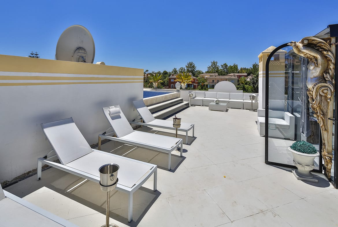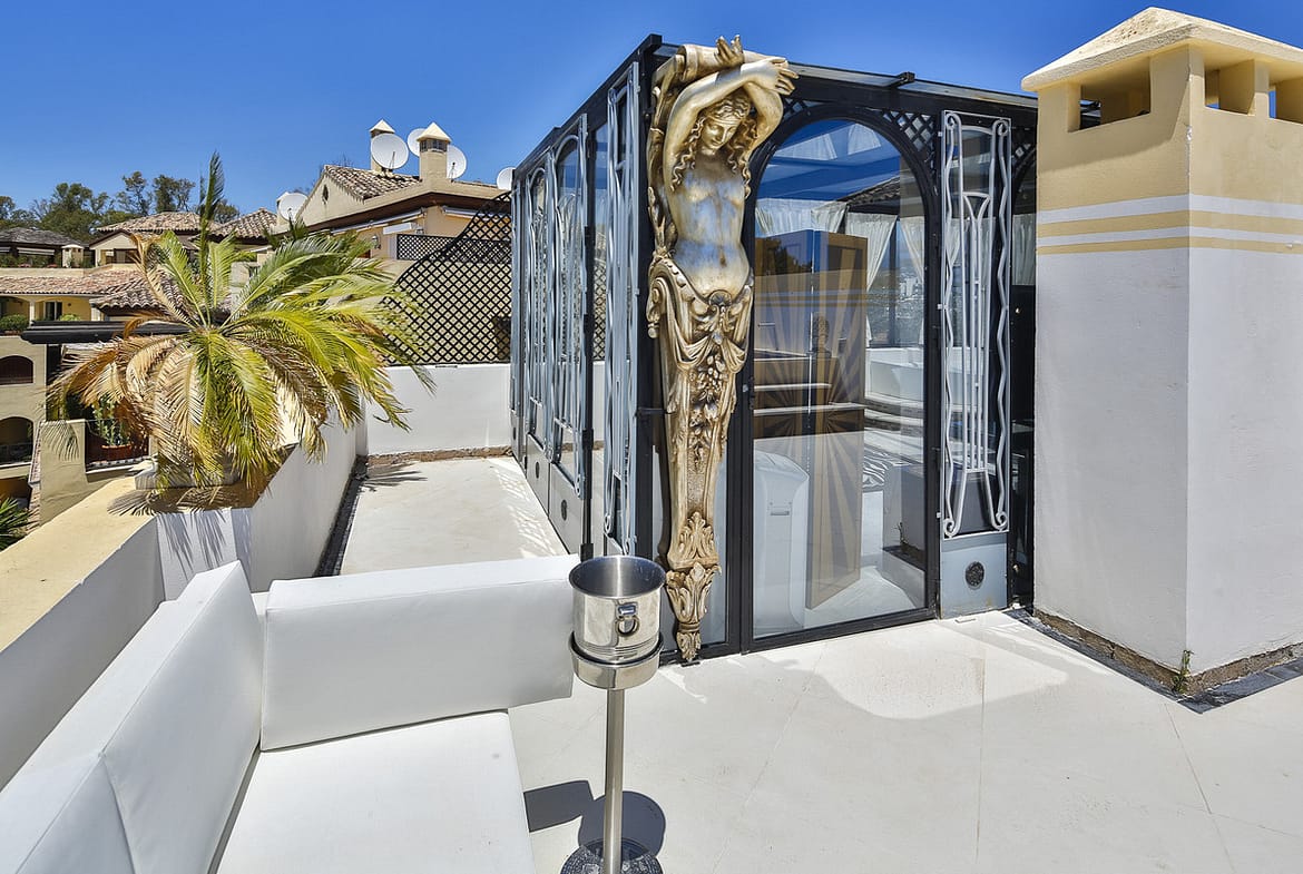 Residents enjoy the benefits of 24-hour security service, a secure entry, and close proximity to top amenities including the beach, port, golf, shops, restaurants, schools, and public transport. Whether as a permanent residence or a sophisticated holiday retreat, this penthouse is a rare gem on the Andalusian coast—where timeless Art Deco design meets modern Mediterranean living.