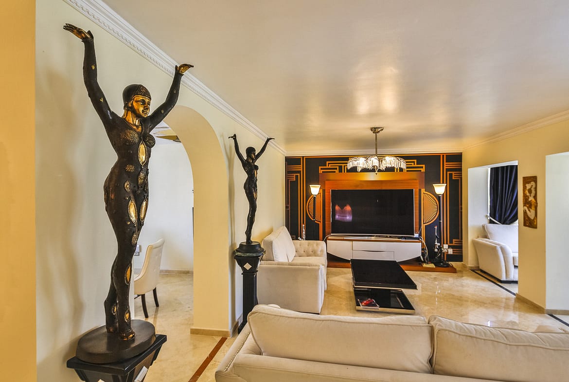 Spanning 167 m² of built space complemented by an expansive 134 m² terrace, this penthouse boasts three beautifully appointed bedrooms, including a master suite with ensuite bathroom, and a total of two bathrooms. The interior is a true masterpiece—fully furnished with unique Art Deco pieces sourced from renowned auction houses such as Christie’s and international locations like New York, London, Paris, and Milan—making this home an unparalleled showcase of global elegance and design heritage.