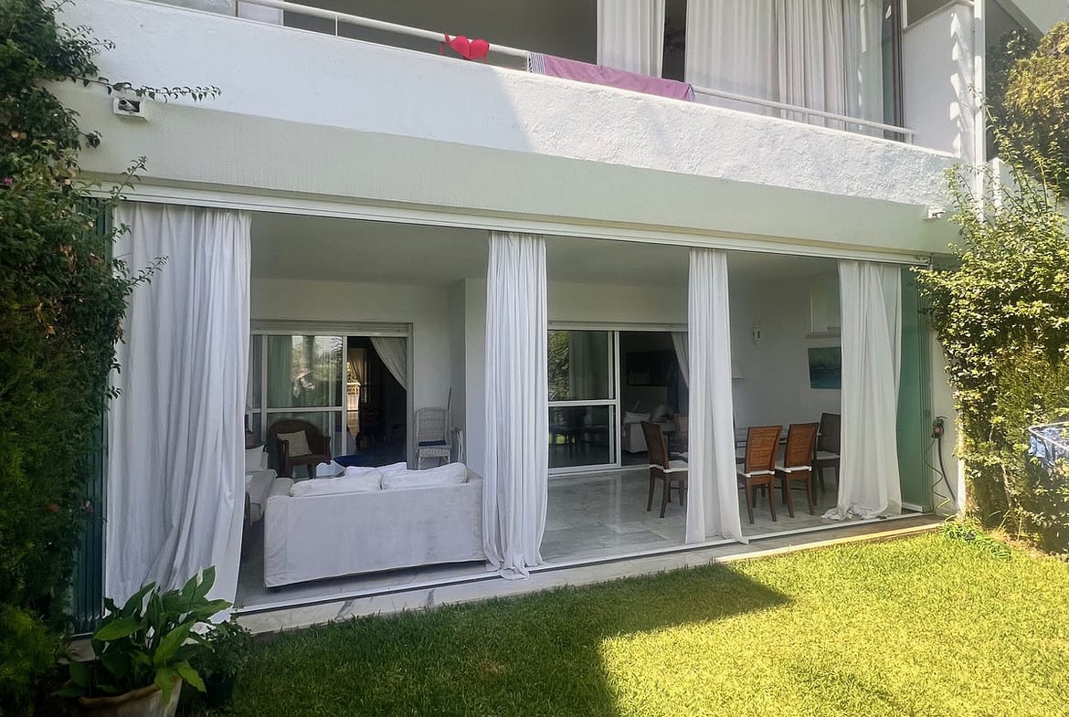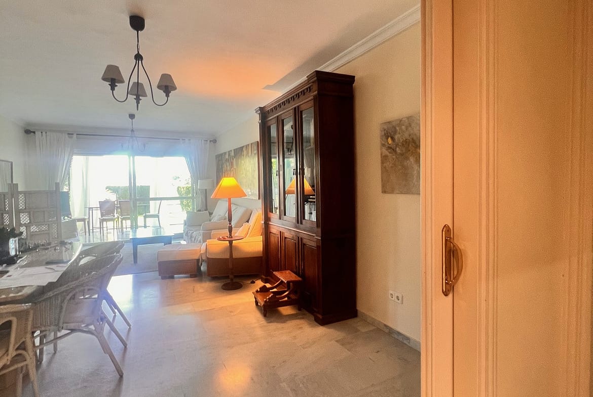 This spacious ground floor apartment in the prestigious Hoyo 15 complex of Guadalmina Baja features 3 bedrooms and 3 bathrooms, offering a comfortable layout for everyday living. Fully furnished, it includes a private fenced garden with direct views of the golf course, creating a peaceful outdoor space. The property is within walking distance to the sea, shops, and local amenities, combining convenience with a prime location. A secure and well-connected home, it’s an excellent choice for long-term living in one of Marbella’s most desirable areas.