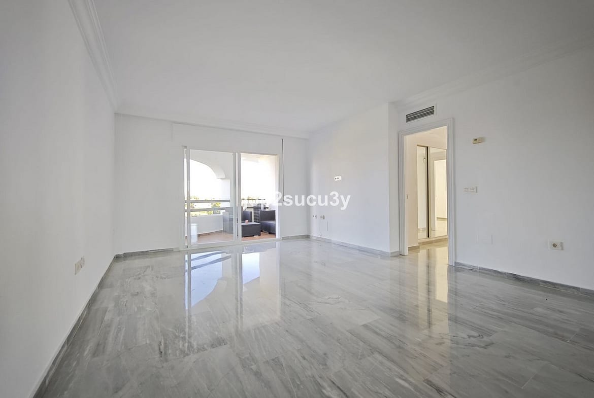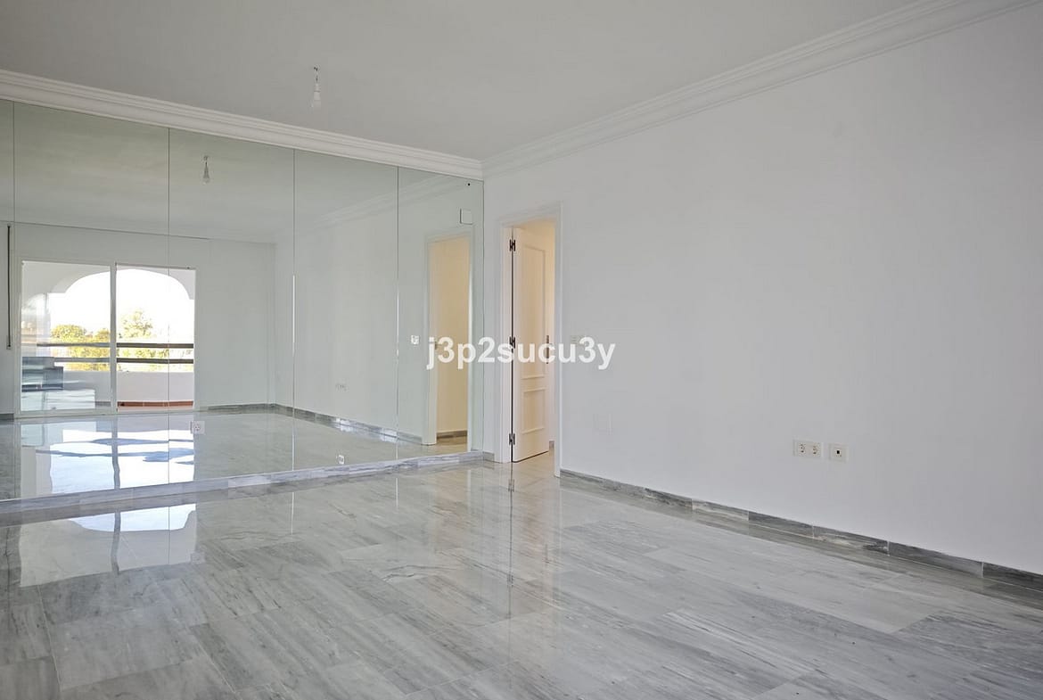 This beautiful flat of 171 square meters is located in Guadalmina Baja, on the first line of the golf course. This flat has 3 bedrooms, one of them with a spacious dressing room and en-suite bathroom, as well as a cosy east-facing terrace. In addition, it has a second shared bathroom for the other two bedrooms, a spacious hallway with built-in wardrobe, a bright living-dining room with fireplace and access to a covered terrace with stunning panoramic views of the golf course and the “Concha” of Sierra Blanca.