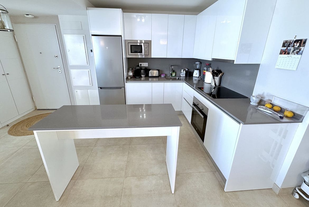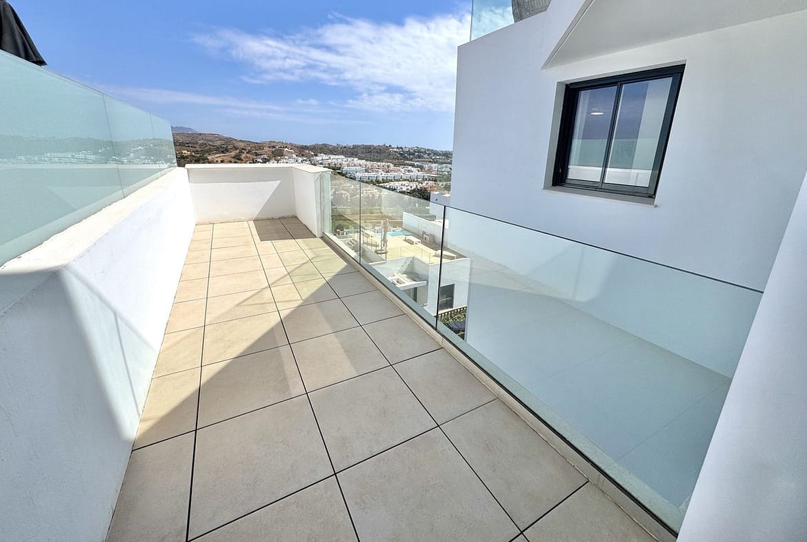 This modern luxury apartment for sale offers; spacious lounge/ dining area with large open plan modern white high-gloss fitted kitchen. With fitted oven, hob, hood, fridge freezer, microwave and dishwasher. The main living area has patio doors and 2 windows to a large (partly covered) terrace area with beautiful La Cala de Mijas sea views, ideal for both relaxing & entertaining. This beautiful apartment has 3 large double bedrooms with fitted wardrobes, two of which have patio doors to a second good size sunny terrace again with with beautiful La Cala de Mijas sea views. The Master bedroom has a walk in wardrobe & luxury en-suite shower room. There is also a 2nd family shower room. Hot & cold air-con, underfloor heating in bathrooms, private parking space and storage room. Interiors have a beautiful timeless design, with high quality finishes and feature neutral colour palettes.
