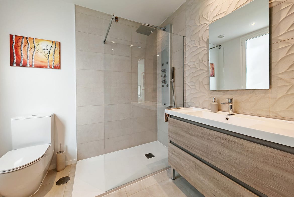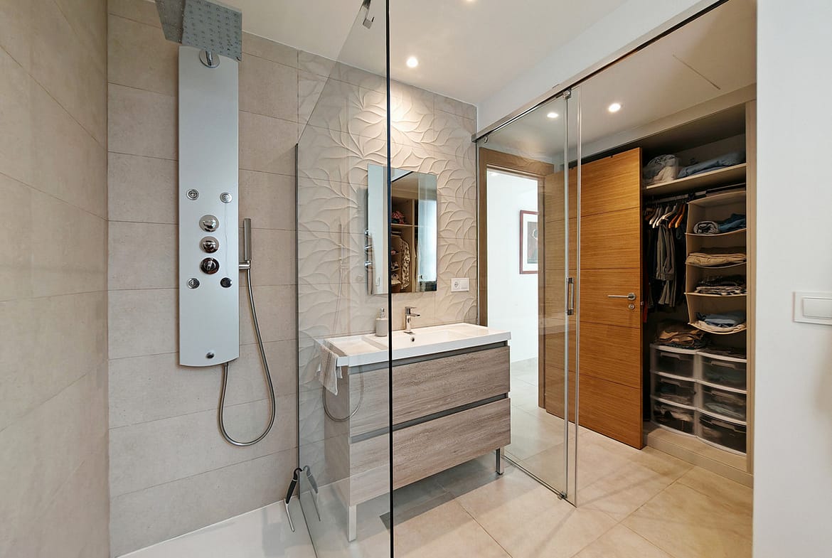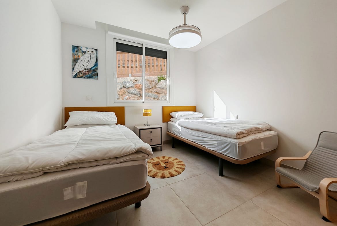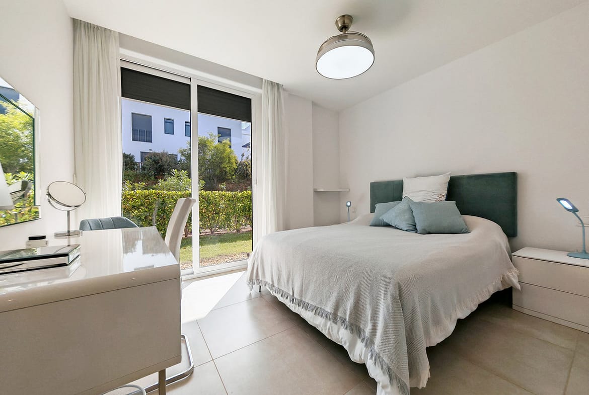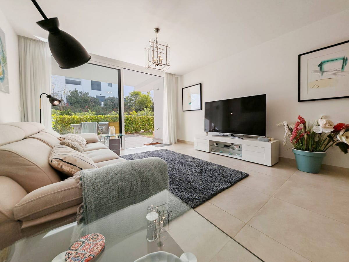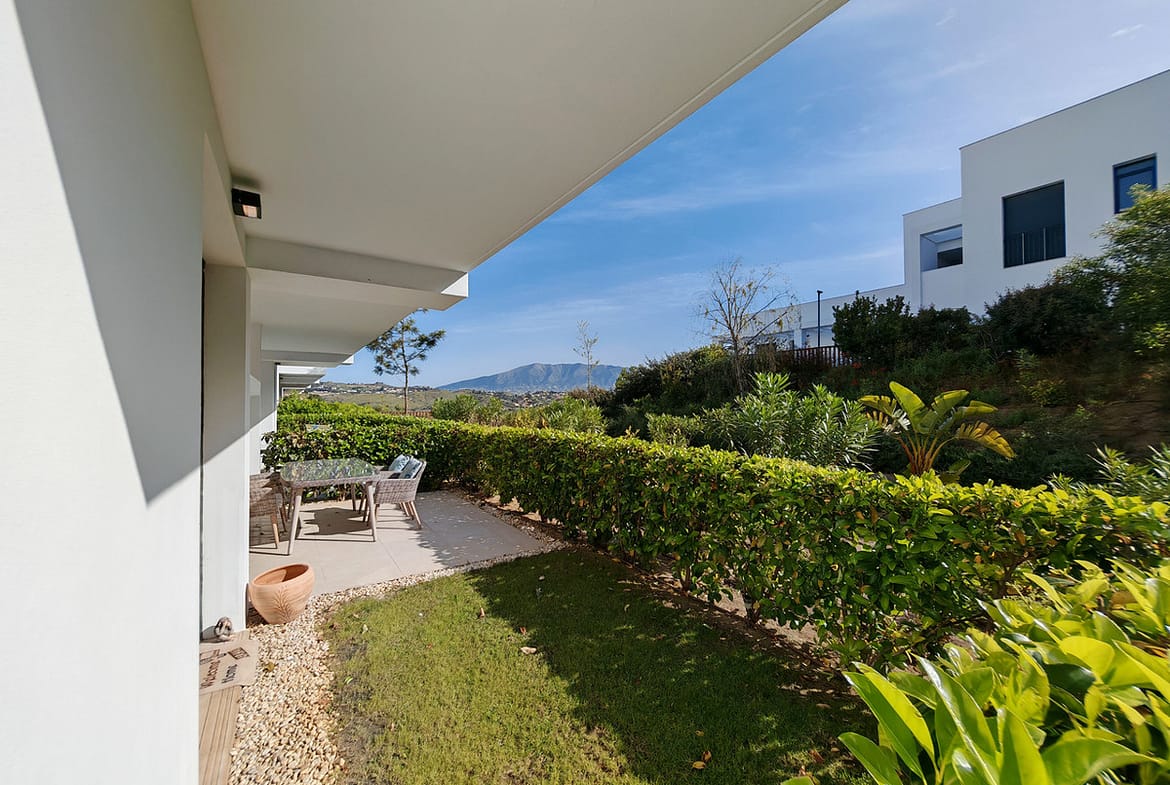 Ground Floor Apartment for sale in , Mijas Costa with 3 bedrooms, 2 bathrooms, 1 on suite bathroom and with orientation east, with communal swimming pool, private garage (1 parking spaces) and private garden. Regarding property dimensions, it has 108 m² built and 26 m² terrace. Has the following facilities amenities near, transport near, air conditioning, fully fitted kitchen, jacuzzi, sauna, satellite tv, solar panels, storage room, gym, security entrance, double glazing, security service 24h, private terrace, kitchen equipped, mountain view, indoor pool, heated pool, security shutters, internet – wi-fi, covered terrace, 24h service, electric blinds, fitted wardrobes, gated community, lift, garden view, tennis / paddle court, doorman, close to children playground, close to sea / beach, close to golf, uncovered terrace, glass doors, optional furniture, spa, wheelchair-accessible, excellent condition, close to shops, close to town, close to schools, surveillance cameras and pets allowed.