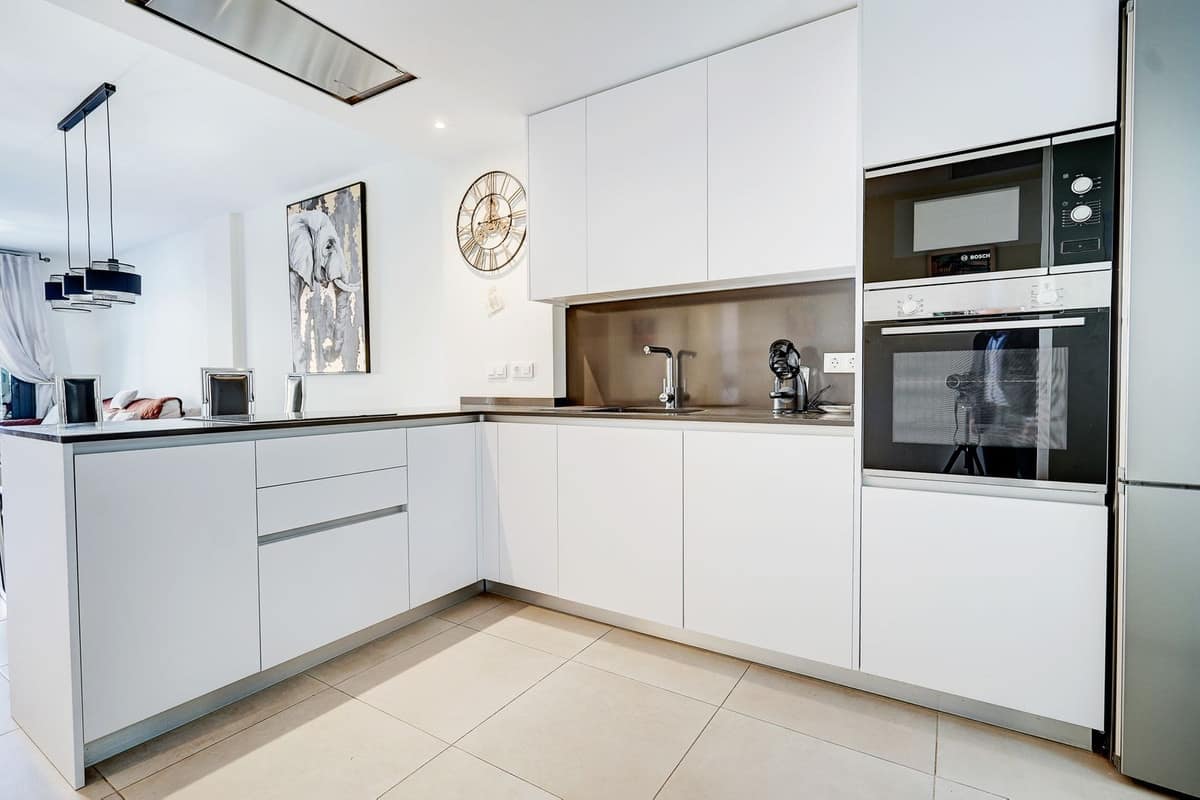 Inside, the apartment features a bright open-plan layout with a modern kitchen flowing directly into the lounge and dining area. The kitchen also benefits from a separate utility room. There are three bedrooms and two bathrooms, including a master bedroom with en-suite bathroom. Both the living room and master bedroom have direct access to the terrace, allowing plenty of natural light and seamless indoor-outdoor living.