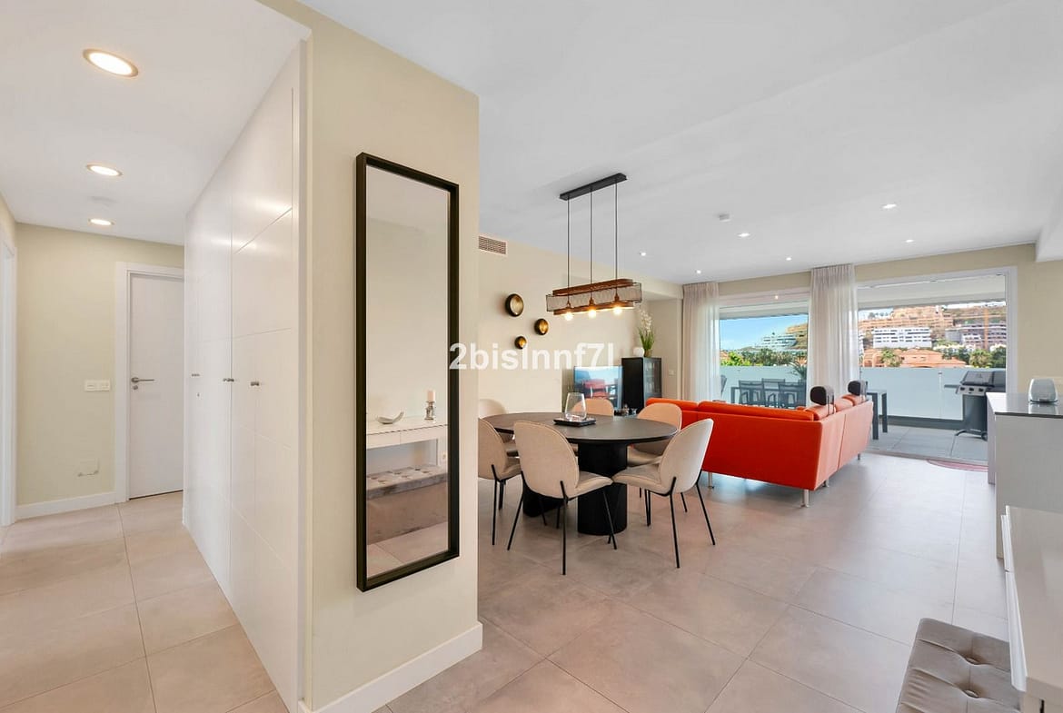 Sophisticated and elegant, semi-new apartment set within a prestigious 5-star residential complex in the vibrant heart of La Cala de Mijas. Boasting 3 spacious bedrooms, 2 bathrooms, and an open-plan designer kitchen, this home perfectly blends comfort with contemporary style. The private covered terrace offers open views to enjoy unforgettable sunsets.