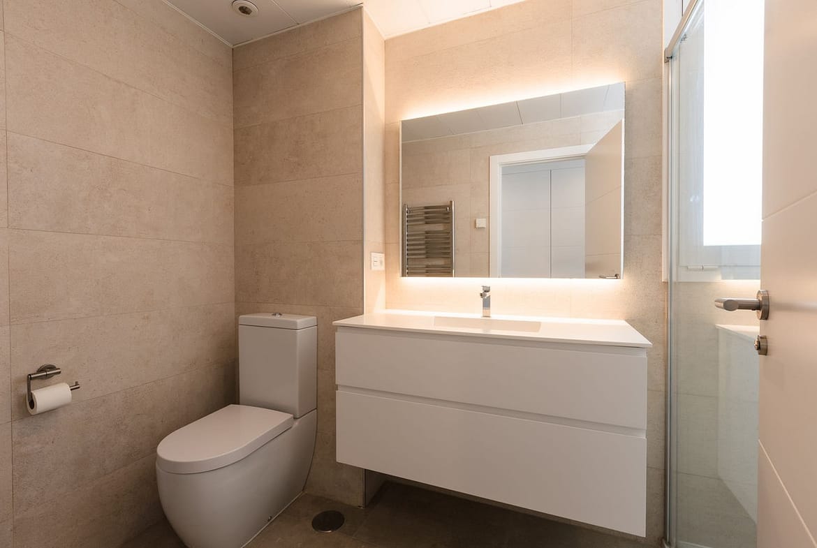 As you enter the property you will find a big open kitchen, living room and dining area with direct access to the 28 sqm, southwest facing terrace. Here you can enjoy the afternoon and evening sun whilst admiring the beautiful view over La Cala de Mijas with the mountains in the background.