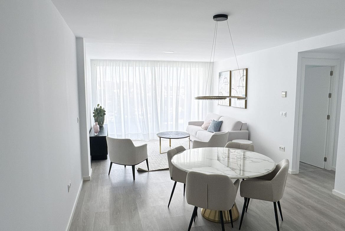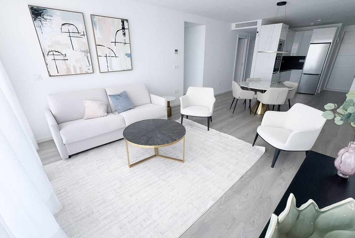 This modern 3-bedroom, 2-bathroom apartment is located in the most privileged position within one of the most know complexes within La cala de Mijas — in the front row, on the lower tier, closer to the pedestrian gate. This ensures panoramic, unobstructed sea views with no buildings in front and zero possibility of future construction blocking the scenery.