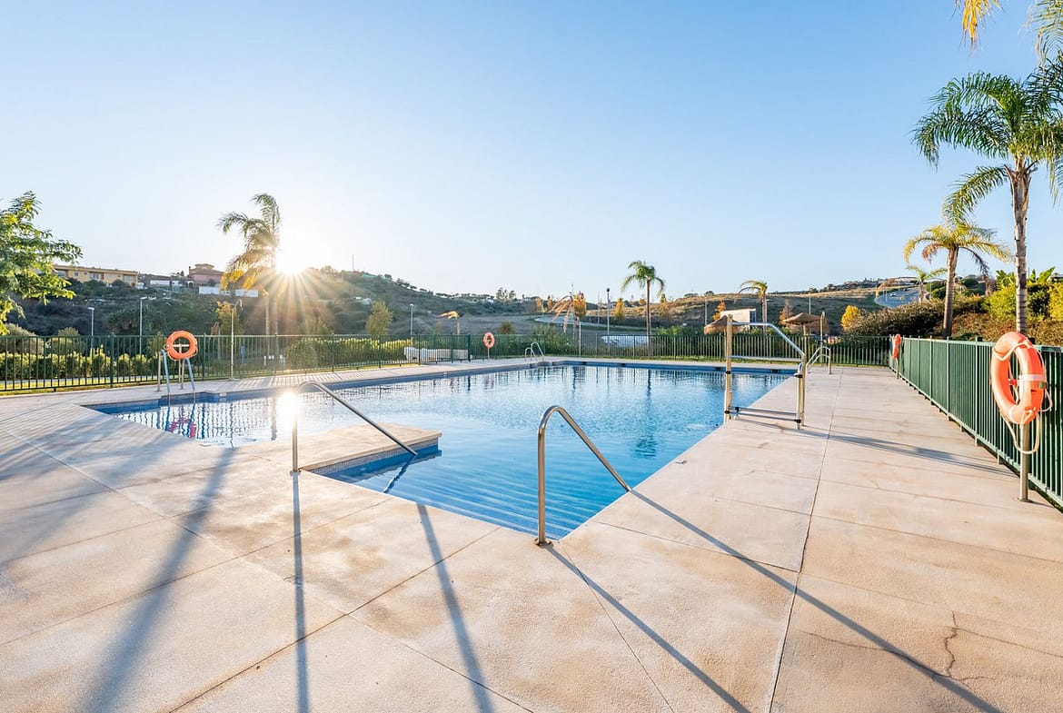 The community areas include extensive landscaped gardens, a children’s playground with swings and play areas, and a sports area with a football field. There is also a large swimming pool with adapted access for seniors and people with reduced mobility, as well as a children’s pool.