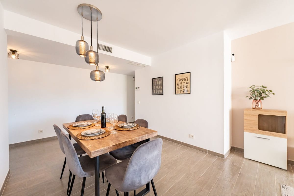 The apartment is tastefully decorated, offering a warm and stylish atmosphere.