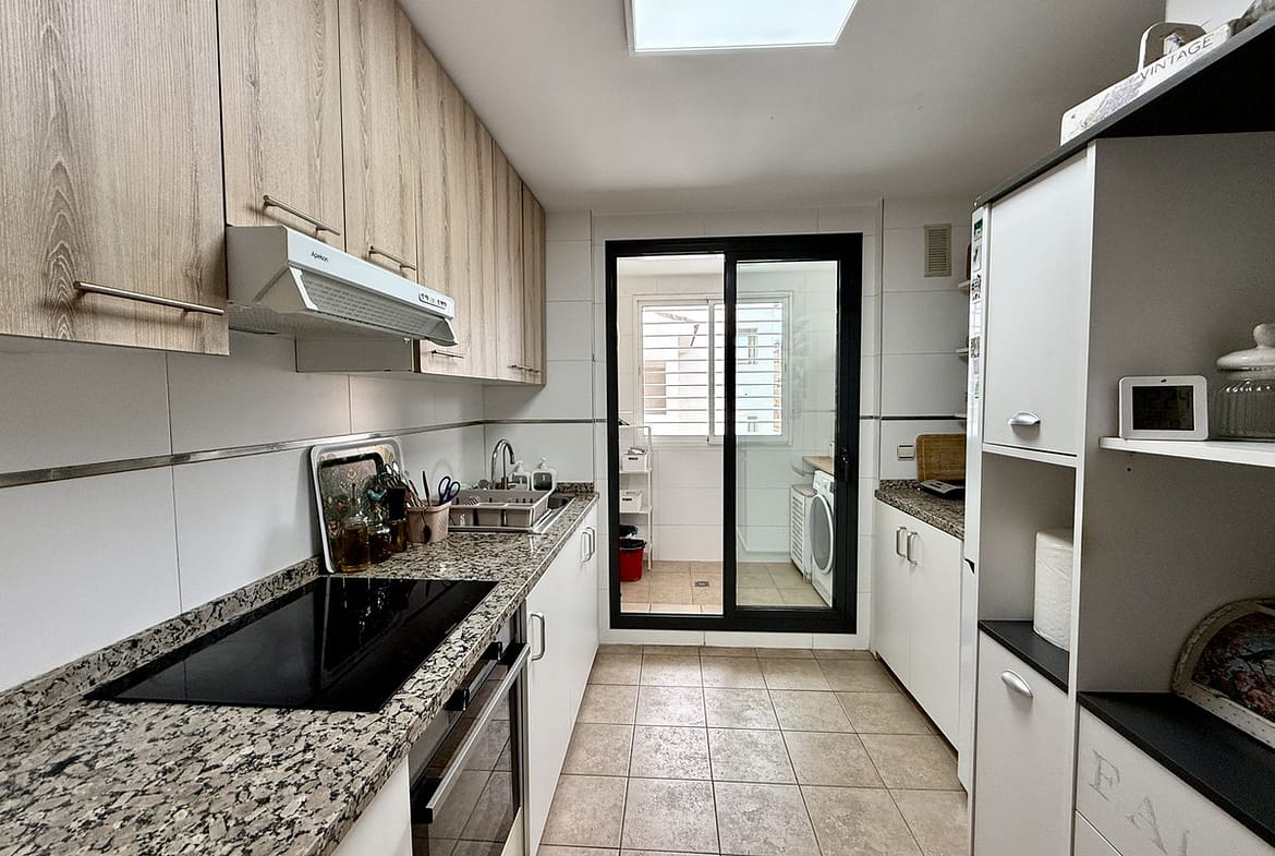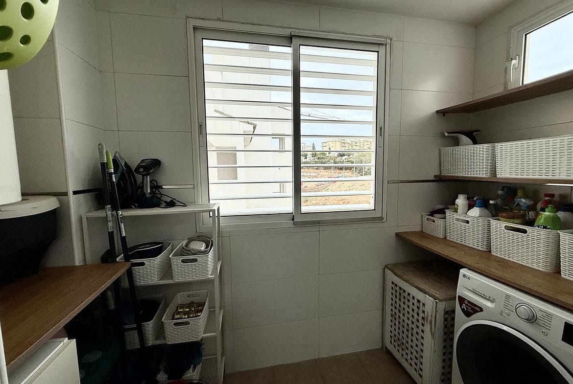 Immaculate, bright corner apartment located within easy walking distance of the beautiful seaside town of La Cala de MIjas. With access via stairs or lift, this beautiful property consists of hallway, spacious lounge/dining room, south east facing terrace with pool and sea views, large modern fully fitted kitchen with separate laundry/utility room, master bedroom with ensuite bathroom, 2 further double bedrooms plus a family bathroom. All bedrooms have ffitted wardrobes and large patio doors with small balconies. The furniture in the apartment is optional. In addition the property has a private underground parking space with adjacent storage room. The complex has abundant outdoor guest parking, beautifully maintained and spotlessly clean communal areas and gardens, salt water swimming pool, sunbathing areas and a padel tennis court. Also, there is a concierge at the gate of the community for most hours of the day plus video entry cameras. All within a 2 minute walk of shops, bars and restaurants and just a 10 minute walk to the beach, local schools, public transport and the bustling town centre of La Cala. Short term rentals are not prohibited but subject to the usual AGM approval rules.