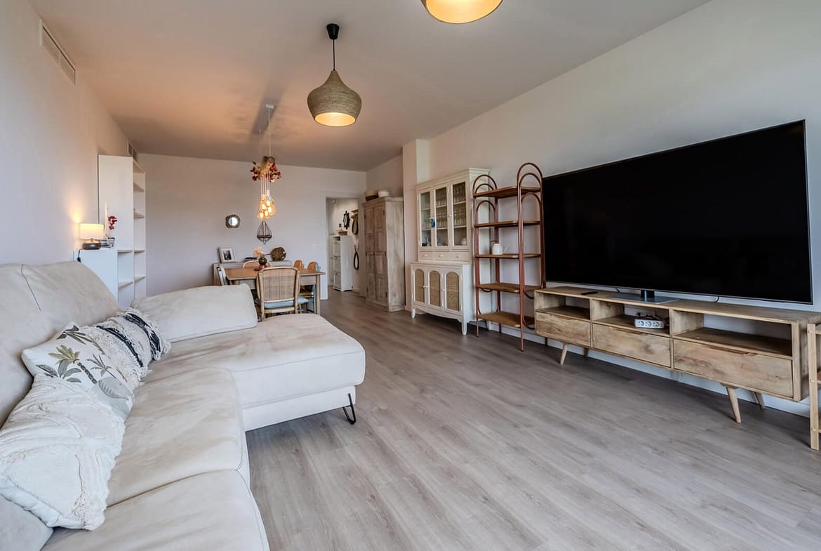 This modern and spacious 3-bedroom, 2-bathroom flat is sold with modern furniture and is equipped to move into immediately. The south-west orientation means it has plenty of light throughout the day as well as panoramic sea views. The property also includes a parking space and a storage room to make life more comfortable for the owners.