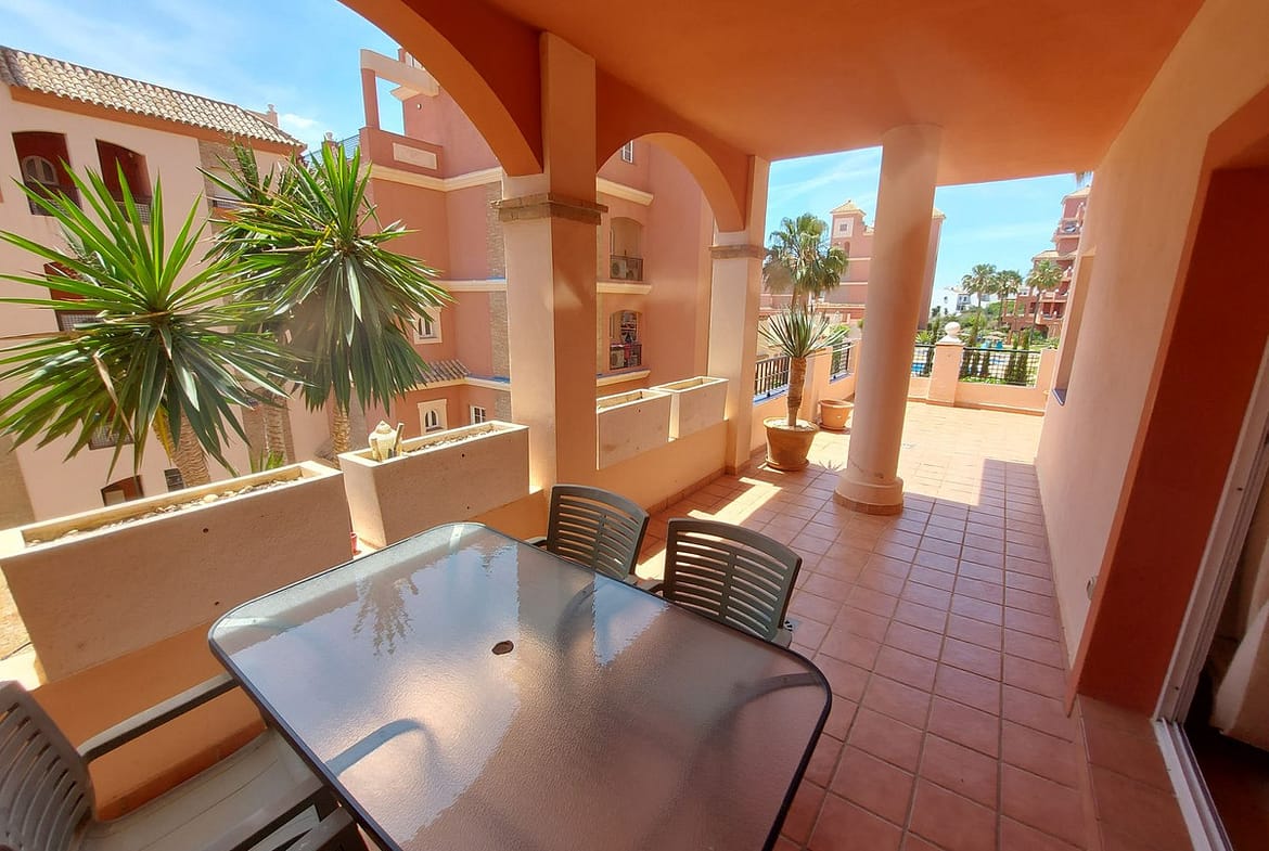 Elevated ground floor apartment with large south facing terrace, only 5 minutes walk to amenities and only 10 minutes walk to Puerto de la Duquesa.
