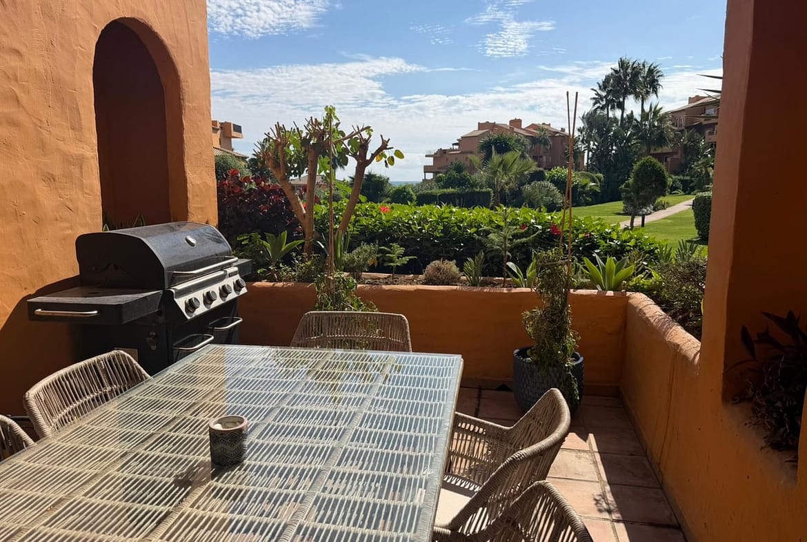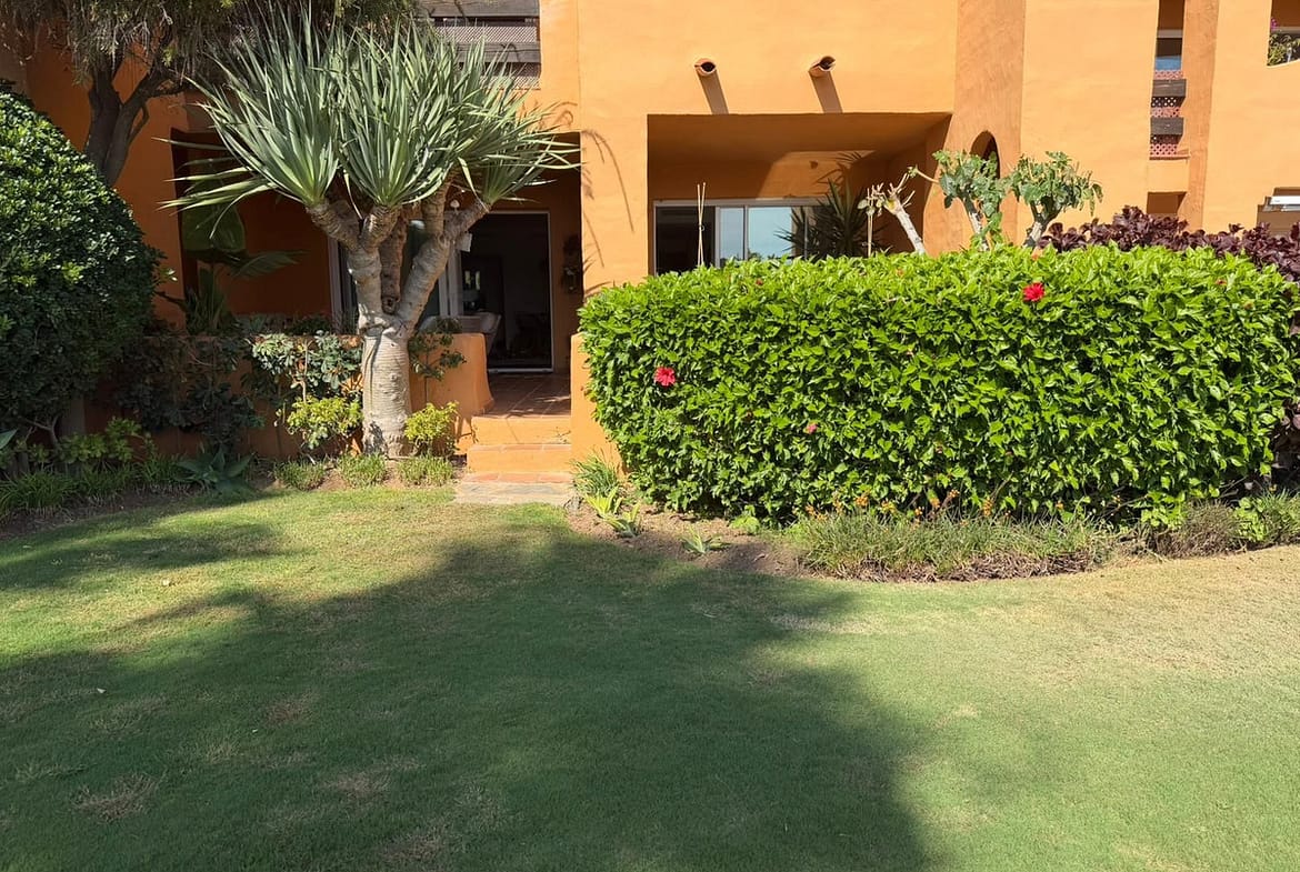 Uncover your perfect seaside sanctuary in the coveted Los Granados Phase II, one of La Duquesa's most exclusive beachfront urbanisations, renowned for its Mediterranean village-style architecture, manicured subtropical gardens, and direct access to a pristine Blue Flag beach. Built in 2004 to the highest standards, this spacious 178 m² built (with generous usable space) south-facing ground floor gem basks in all-day sunshine, offering uninterrupted sea glimpses and a serene escape just steps from the charming Castillo de la Duquesa fishing village and the vibrant Puerto de la Duquesa marina – a mere 5-10 minute stroll away, brimming with international restaurants, lively bars, boutiques, supermarkets, and watersports galore.