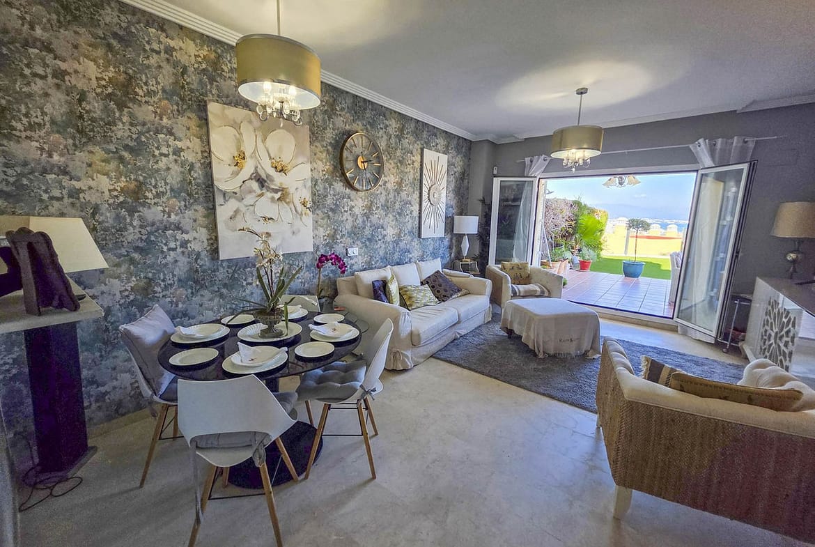 STUNNING GROUND FLOOR APARTMENT WITH PRIVATE GARDEN AND PANORAMIC SEA VIEWS IN LA DUQUESA