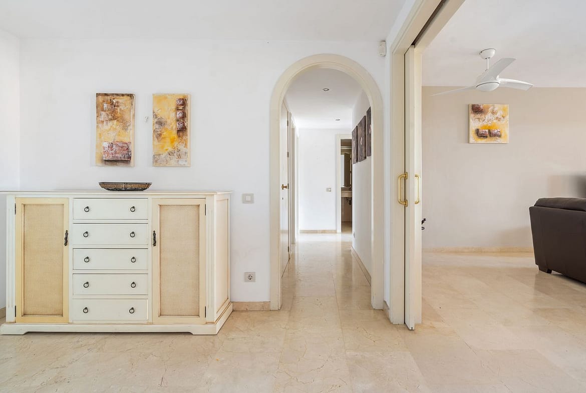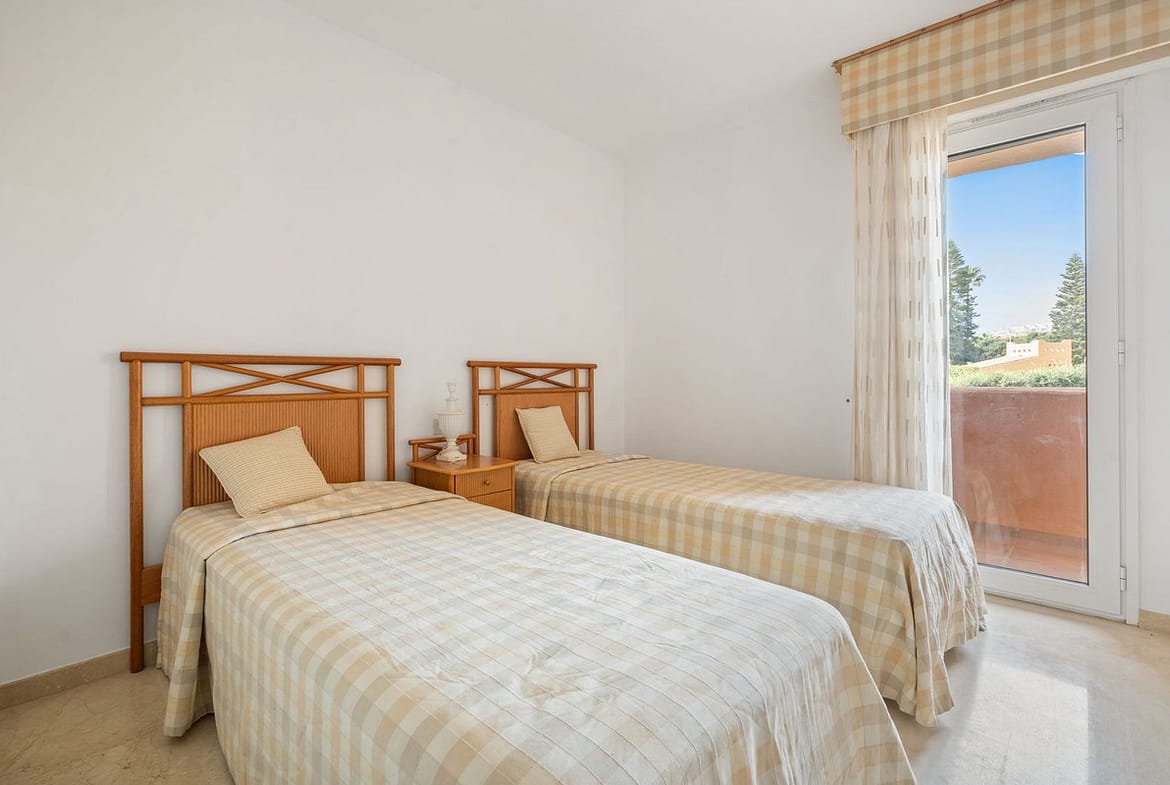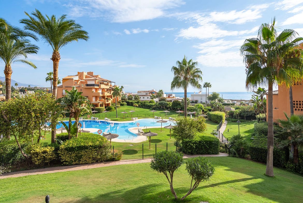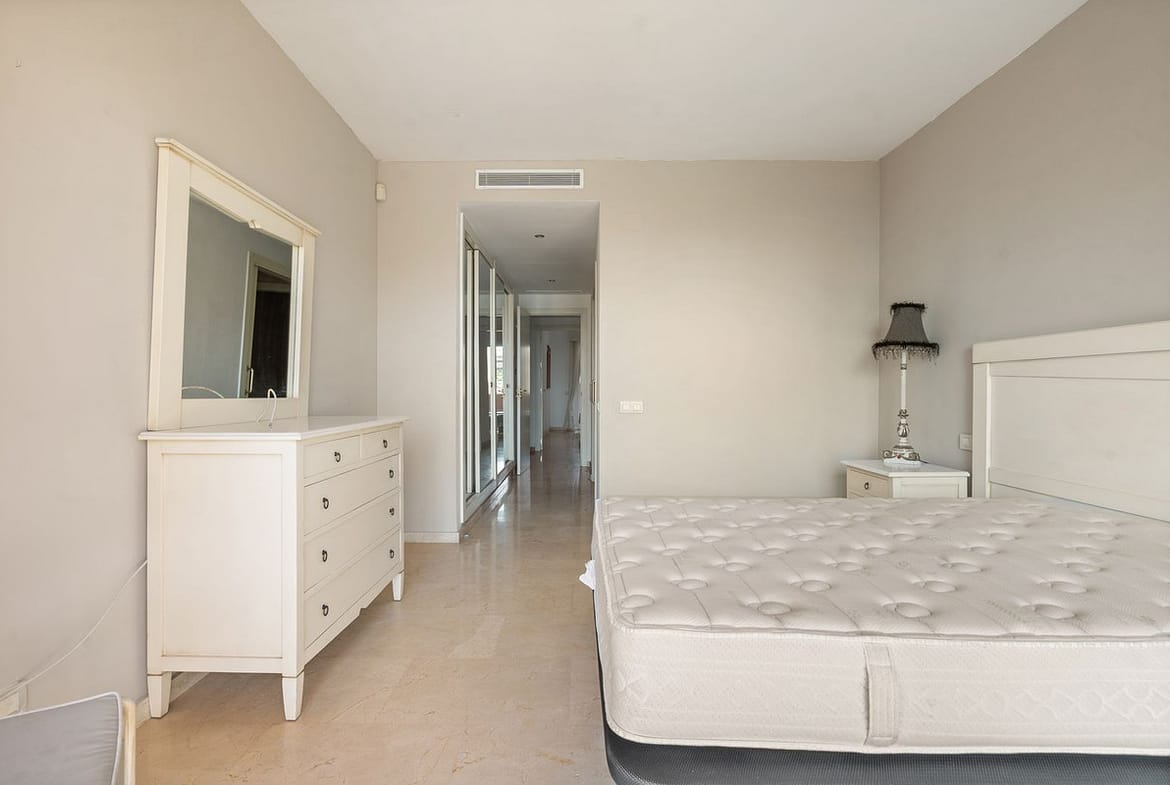 Fantastic first-floor apartment in one of Manilva’s most exclusive beachfront complexes, Los Granados de Duquesa. It offers three spacious bedrooms and two bathrooms. The master bedroom has an en-suite bathroom and direct access to a terrace with sea views, while the second bedroom enjoys another southwest-facing terrace that brings plenty of natural light. The property also features direct access to the beach and promenade, 24-hour security with video intercom and CCTV, as well as individual air conditioning in every room. The community offers a swimming pool and tropical gardens, and the apartment includes a private underground parking space. Just a short walk from La Duquesa marina, this is a unique opportunity to enjoy the Mediterranean lifestyle in an unbeatable location.