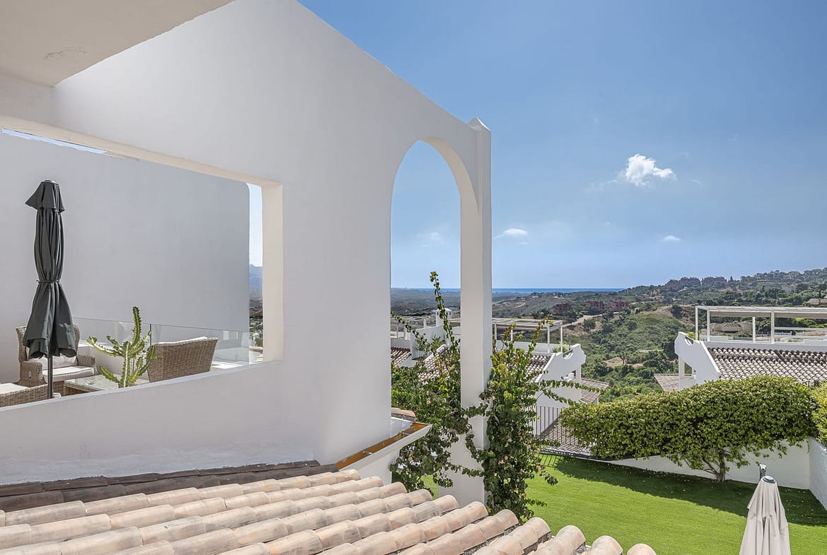 Sea views and 3 bedrooms is offering this exclusive apartment in Elviria Alta / La Mairena and enchants with breathtaking panoramic views over the sea and the mountains – a place where peace, nature, and the Mediterranean lifestyle blend in perfect harmony. Just a few minutes away from the beaches and the vibrant life of Marbella, you can enjoy the pure beauty of Andalusia in a privileged location.