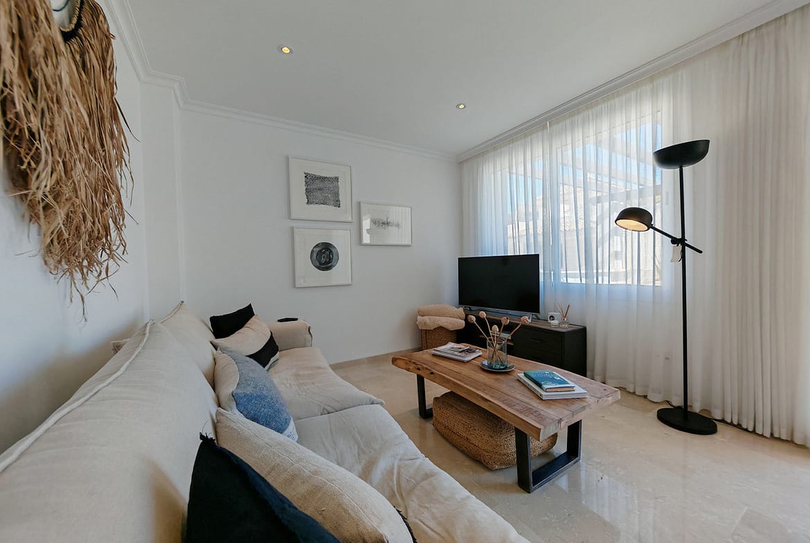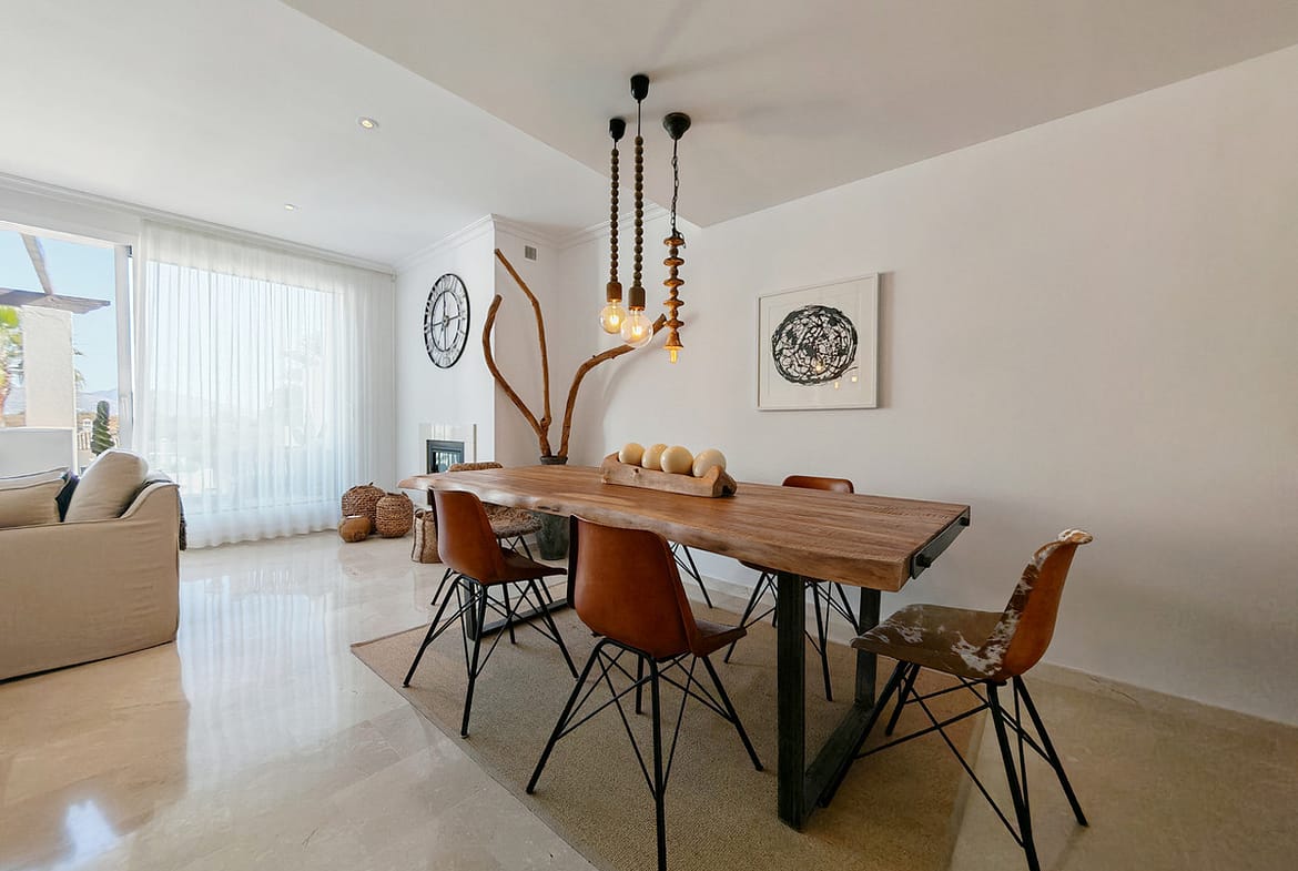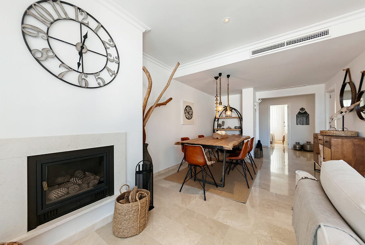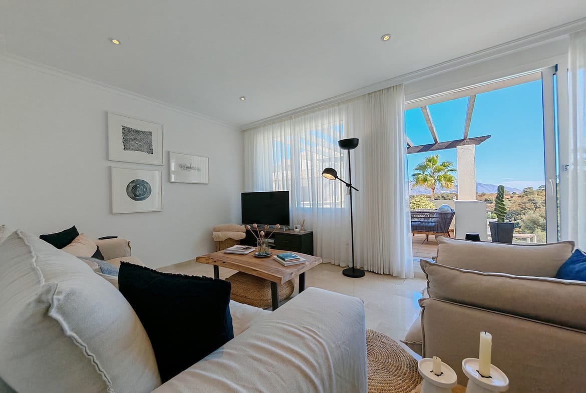 Apartment for sale in La Mairena, Marbella with 3 bedrooms, 2 bathrooms, 1 on suite bathroom and with orientation south/east, with communal swimming pool, private garage (1 parking spaces) and communal garden. Regarding property dimensions, it has 138 m² built, 108 m² interior and 105 m² terrace. Has the following facilities mountainside, amenities near, air conditioning, fireplace, marble floors, solarium, double glazing, video entrance, barbecue, private terrace, kitchen equipped, country view, mountain view, automatic irrigation system, internet – wi-fi, fitted wardrobes, gated community, garden view, pool view, panoramic view, underfloor heating (bathrooms), unfurnished, close to sea / beach, close to golf, uncovered terrace, excellent condition, ceiling cooling system, ceiling heating system, close to shops, close to town, close to schools, pets allowed, roof terrace and close to restaurants.