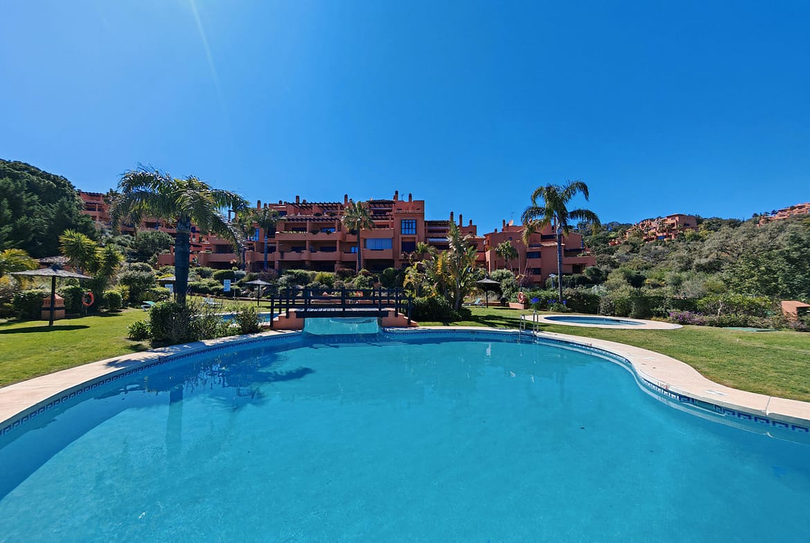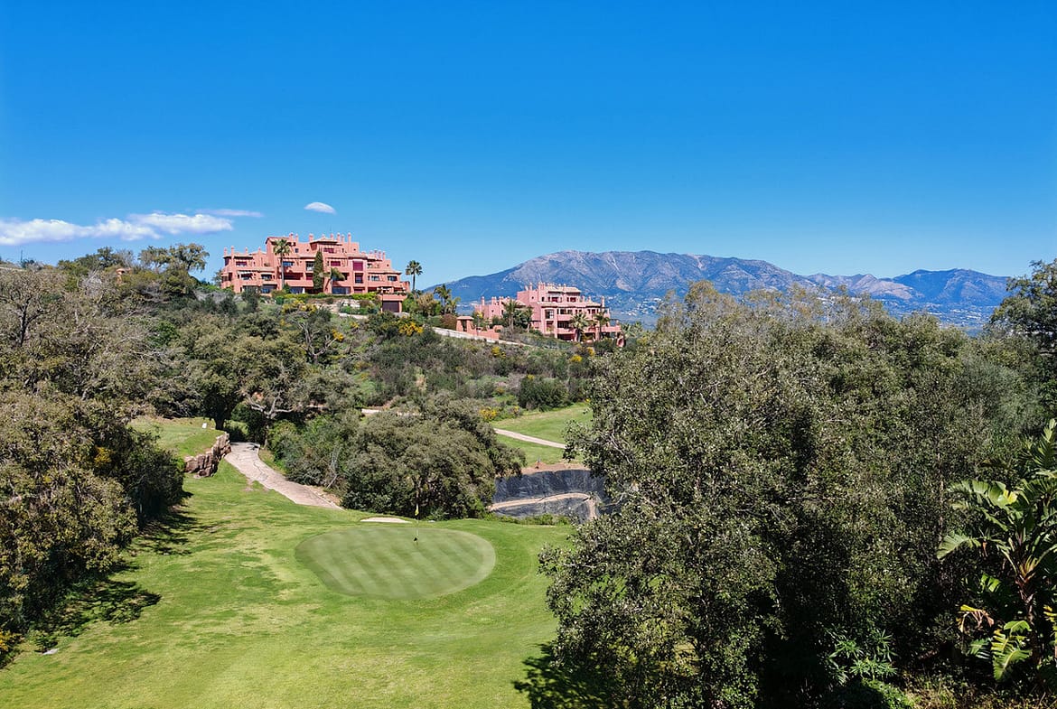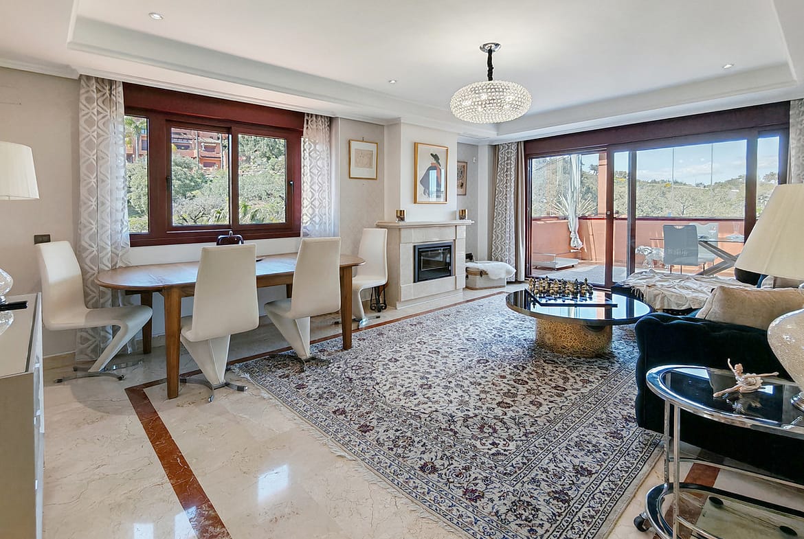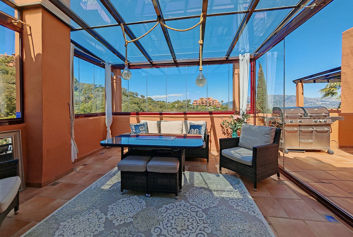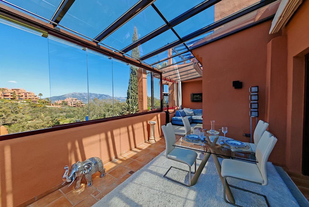 Duplex for sale in La Mairena, Marbella with 3 bedrooms, 3 bathrooms and with orientation south/west, with communal swimming pool, private garage (1 parking spaces) and communal garden. Regarding property dimensions, it has 270 m² built, 161 m² interior and 77 m² terrace. Has the following facilities front line golf, mountainside, amenities near, air conditioning, central heating, fully fitted kitchen, utility room, fireplace, storage room, gym, alarm, private terrace, sea view, country view, golf view, heated pool, smart home system, internet – wi-fi, covered terrace, electric blinds, fitted wardrobes, gated community, lift, pool view, panoramic view, tennis / paddle court, close to golf, glass doors, excellent condition, recently renovated / refurbished, lake view, close to town and close to schools.