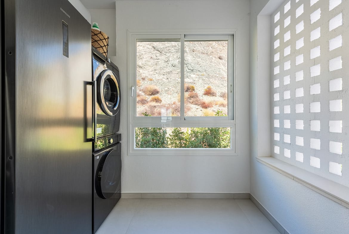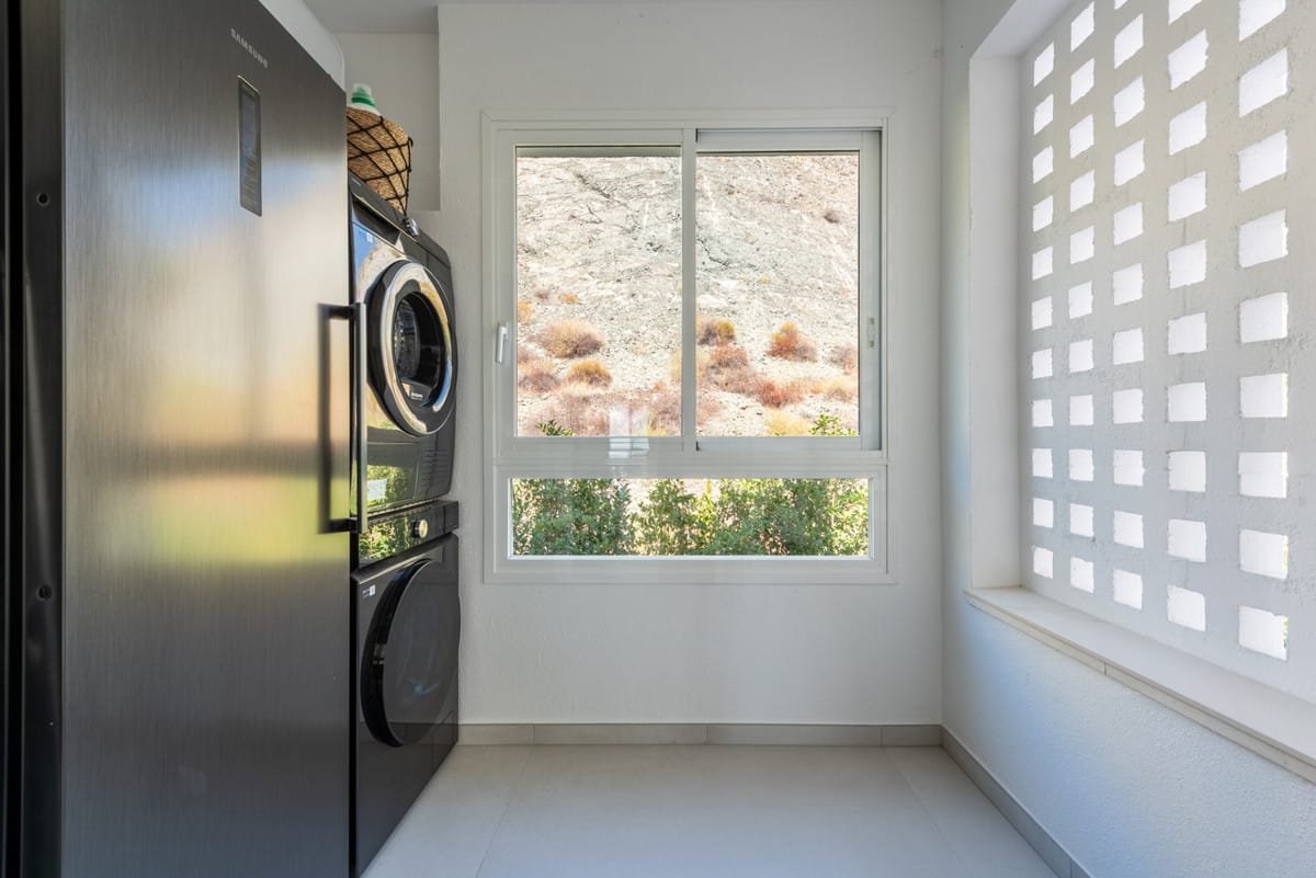 The interior showcases a minimalist Scandinavian aesthetic, seamlessly blending high-quality materials with a soft, neutral palette that enhances light and space. A fully equipped kitchen with premium Samsung appliances complements the open, airy feel, creating a perfect balance between style and comfort.