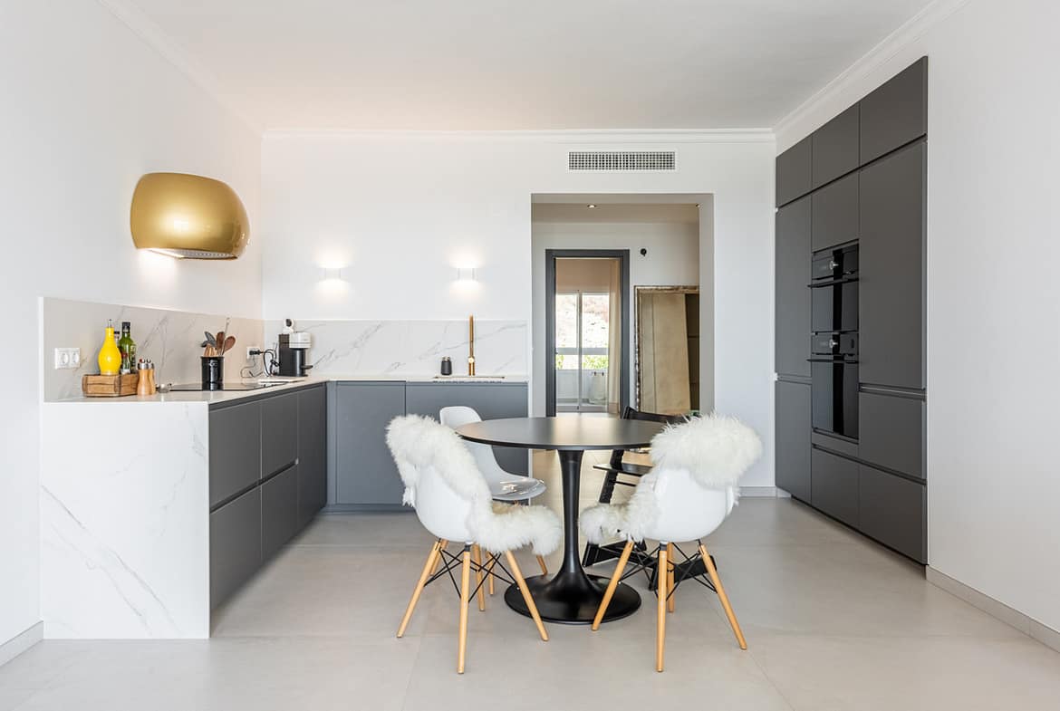 This 144 sqm residence has been exquisitely renovated with an emphasis on clean lines, refined design, and top-tier finishes. Offering three spacious bedrooms, two sophisticated bathrooms, and a stunning terrace with breathtaking views of the sea and surrounding mountains. Perfect for enjoyable gatherings on the terrace all year round. This home embodies modern luxury.