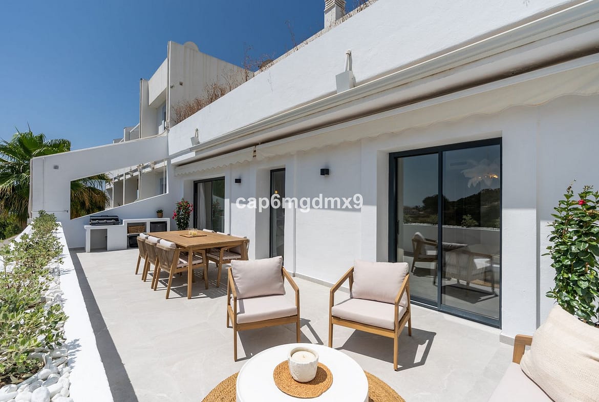 Fully renovated 3 bedroom apartment located in a quiet residential area in La Quinta, within walking distance to the La Quinta golf club with amenities such as a spa and gym. The apartment has been fully refurbished to a high standard. The apartment is very spacious, with an open plan fully fitted kitchen, dining area and living space; all with direct access to the large terrace with BBQ, fridge and open views of La Concha mountain, golf and the sea. The master bedroom has an ensuite bathroom as well as sea views and direct access to the terrace. The two guest bedrooms have ensuite bathrooms, in addition to a guest toilet. There is hot/cold air conditioning throughout, as well as underfloor heating in the bathrooms.