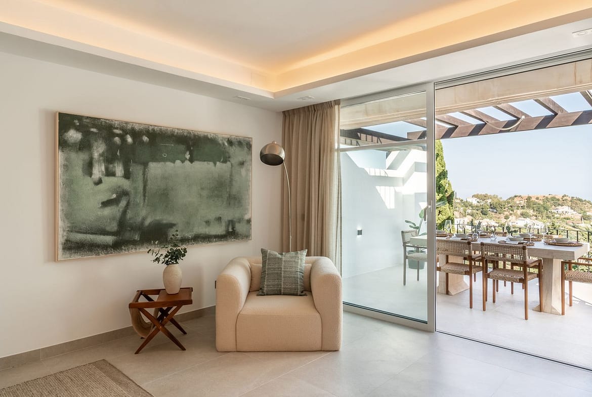 A second well-sized bedroom comes with its own stylish en-suite bathroom. The third bedroom is equally spacious and shares the beautifully appointed main bathroom, which includes underfloor heating for ultimate comfort. Throughout the penthouse, enjoy the ease of a smart AC system, ensuring perfect climate control year-round, and underfloor heating in all bathrooms for an added touch of luxury.