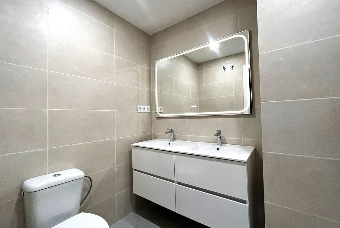 It has 3 bedrooms (the main one en suite) and 2 bathrooms, as well as a large open-plan living-dining room-kitchen area with access to a spectacular 25 m² terrace. The master bedroom has a built-in wardrobe, en-suite bathroom and direct access to the terrace. The second bedroom connects to another interior terrace of 21 m², and the third, very bright, also has built-in wardrobes.