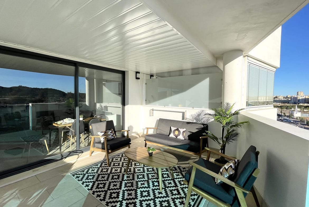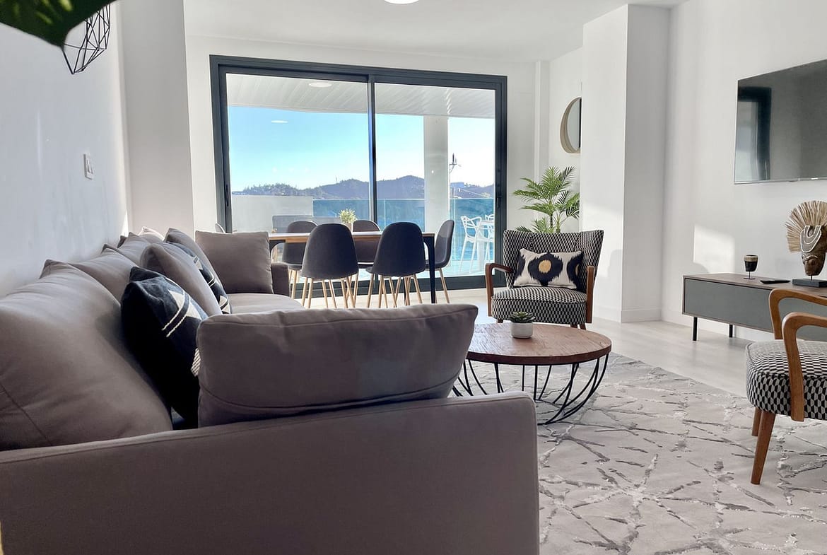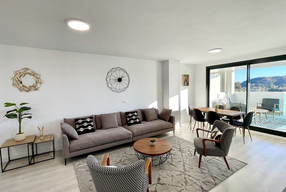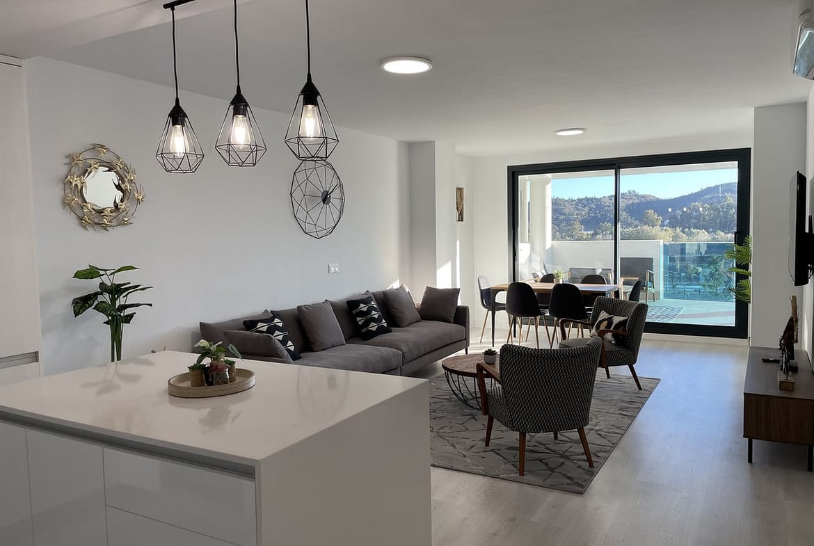 Modern and spacious 3 bedrooms 2,5 bathrooms apartment in Las lagunas Fuengirola, south facing sizeable covered terrace, open plan kitchen, separate laundry/utility room, top appliances,
