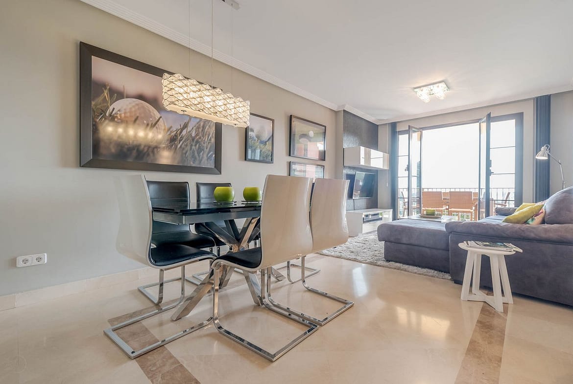 This beautiful ground floor apartment offers breathtaking views over the golf course, the Mediterranean Sea, and the surrounding mountains.