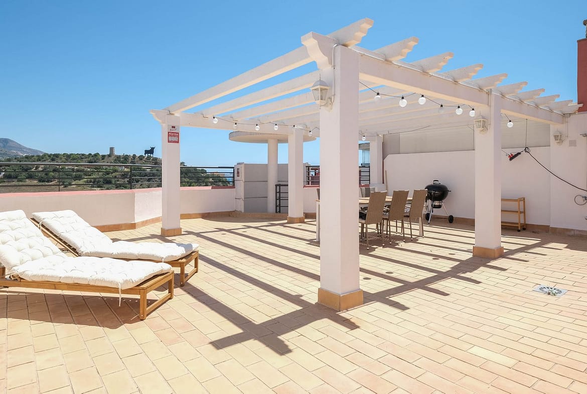 One of its standout features is the spectacular private solarium of nearly 100 sqm, an ideal space to sunbathe, relax, entertain guests, or simply enjoy the panoramic views of both the sea and the mountains.