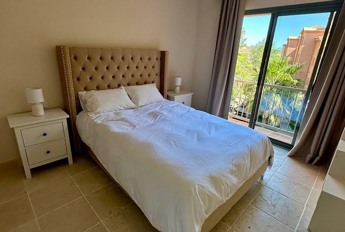 Boasting a spacious layout, the apartment offers a generous living and dining area that flows from the elegant foyer, featuring floor‑to‑ceiling sliding doors that open onto a spacious covered terrace — the perfect setting for entertaining or relaxing while taking in panoramic golf and sea views.