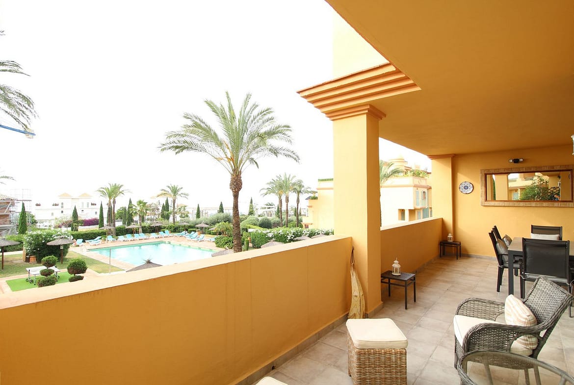Located in the prestigious Los Flamingos Golf Resort, perfectly positioned between Marbella and Estepona, this spacious and beautifully presented first-floor apartment enjoys stunning views across lush tropical gardens and the pool, stretching out to the Mediterranean Sea beyond.