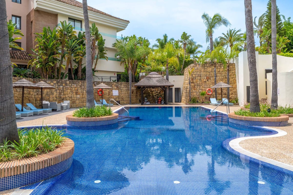 This 3 bedrooms southwest-facing ground floor apartment is located in the exclusive residential area of Los Monteros, renowned for its high security and the famous La Cabane beach club, at just 6 min walking from the most beautiful beaches. It is part of the only existing luxury apartment complex in this area, which features tropical gardens and an elegant swimming pool within a fully gated community.