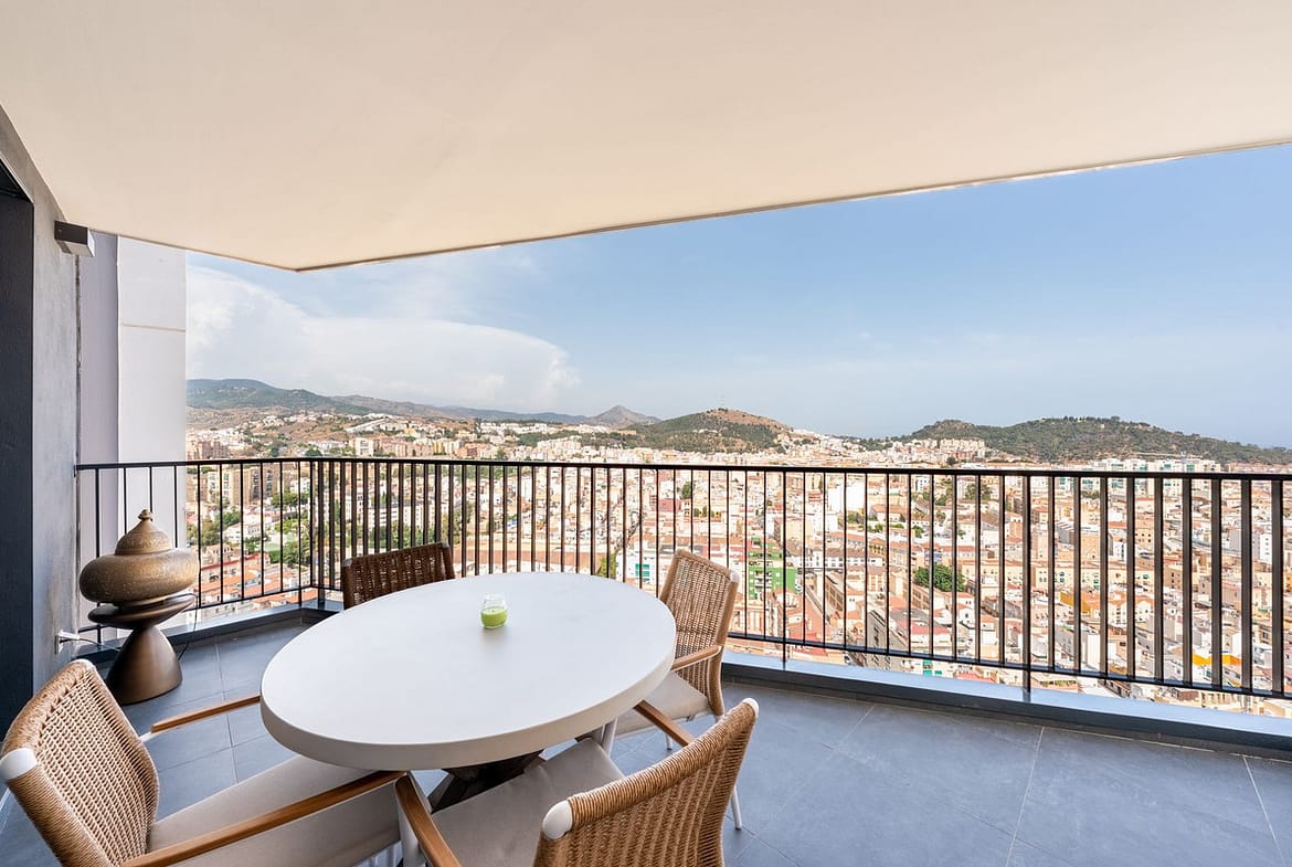 Step into elevated elegance in the heart of Malaga with this exquisite three-bedroom, two-bathroom residence located on the twenty-fourth floor of the iconic AQ Urban Sky South Tower. Soaring above the city, this contemporary sanctuary offers sweeping panoramic views that stretch from the shimmering Mediterranean Sea to the historic charm of La Alcazaba, capturing the very essence of coastal sophistication.