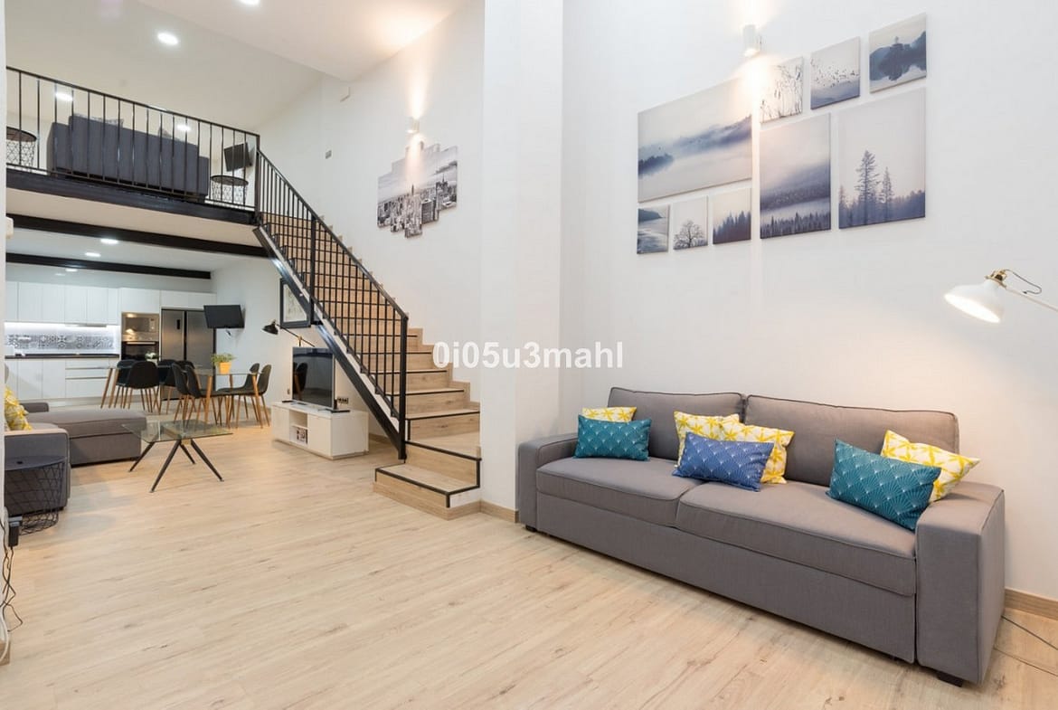 This 113 m2 loft is located on a quiet, traffic-free street, 100 meters from Plaza de la Merced, in the heart of the historic center, a short distance from Calle Larios, and just a few minutes' walk from Muelle Uno and the Malagueta beaches.