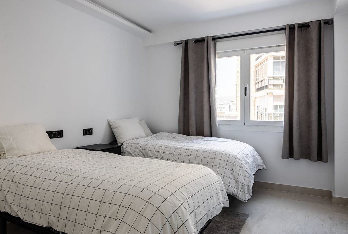 This exquisitely renovated apartment is situated in a prime location in the heart of Soho, adjacent to the port. Nestled within an exclusive community with concierge service, it does not permit touristic licenses. The apartment features three bedrooms, including one with an ensuite bathroom, and all rooms are bathed in natural light.