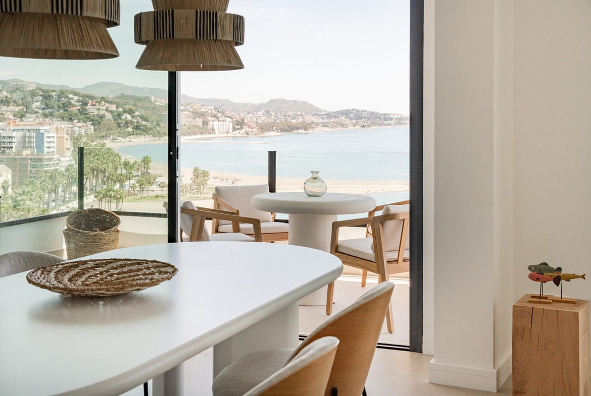 The property has been completely renovated with exceptional quality finishes and a refined contemporary design. It comprises a spacious open-plan living and dining area, enhanced by expansive floor-to-ceiling windows that flood the space with natural light. The fully equipped kitchen is seamlessly integrated into this area, creating a bright and inviting social hub. This open space flows out onto a stunning terrace overlooking the Mediterranean and La Malagueta beach. The sleeping area features three spacious bedrooms, each with its own en-suite bathroom, as well as a guest toilet. One of the bedrooms also enjoys access to a private terrace with lovely views.