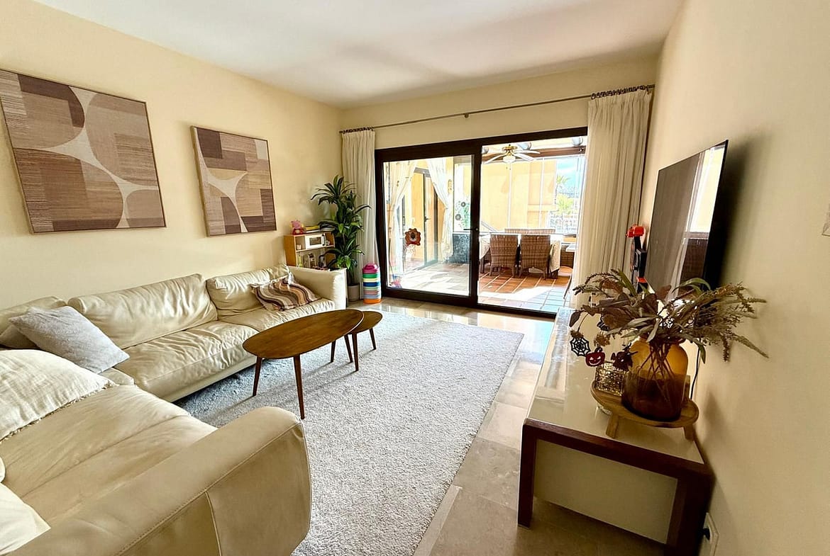This elegant 3-bedroom, 2-bathroom ground-floor apartment is fully furnished and key-ready. Located in one of Manilva’s most desirable gated communities — Coto Real — it’s an ideal choice for anyone looking for a permanent residence, a stylish holiday escape, or a reliable investment on the Costa del Sol.