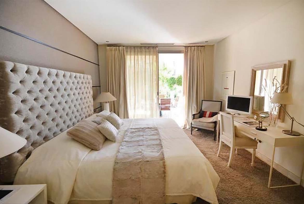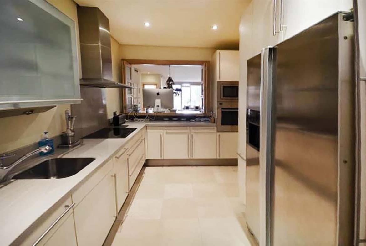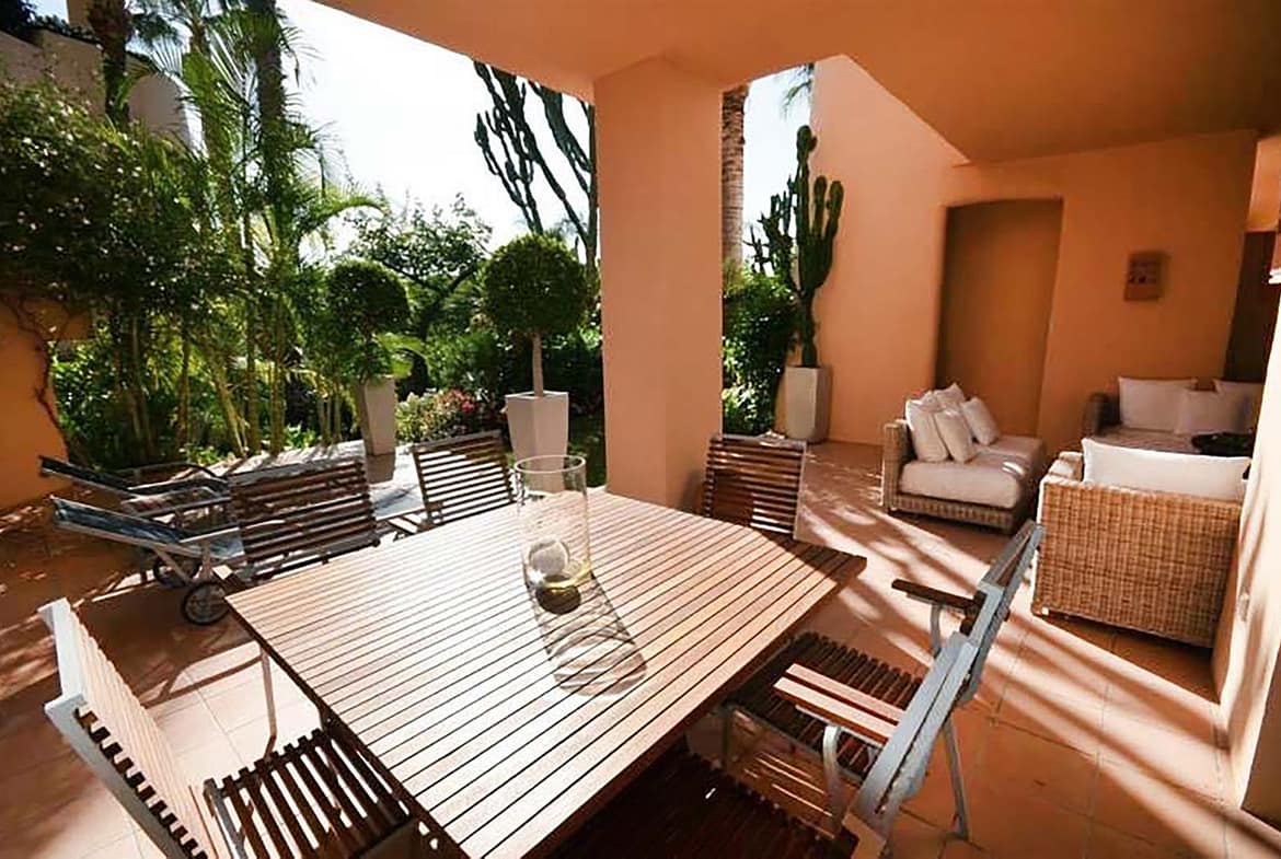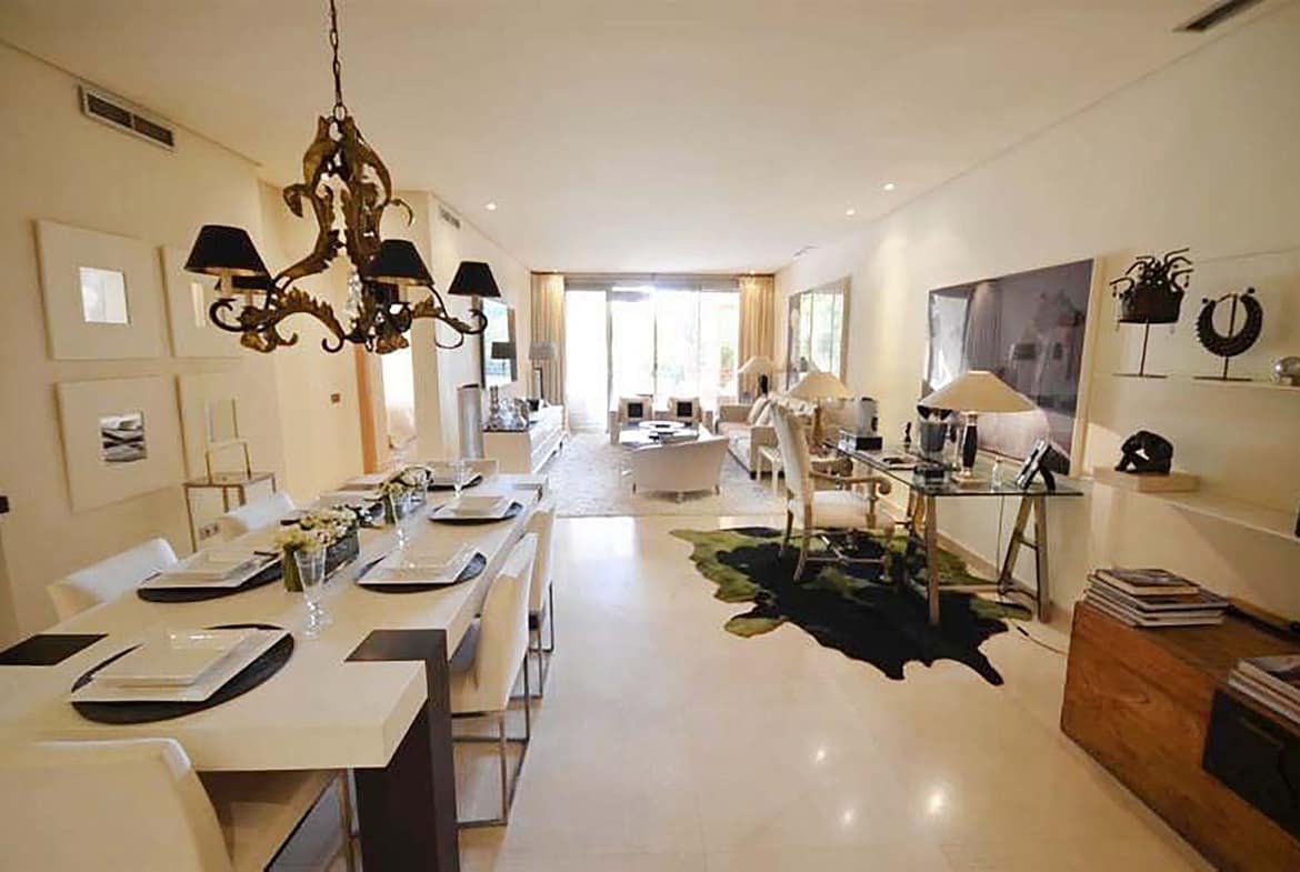 A stunning, south-facing, three-bedroom corner, and very private ground-floor apartment in the renowned Mansion Club, an exclusive gated community nestling in the foothills of Sierra Blanca. This development designed by leading architect, Melvin Villarroel is set in landscaped tropical gardens with walkways; lakes, pergolas, mosaics, and other exquisite features which give this development a marked Andalucian flavour. The accommodation comprises of an entrance lobby; spacious lounge and dining room with French windows leading out to a covered terrace; open plan fitted kitchen; utility room; two guest bedrooms sharing a bathroom; master bedroom with en-suite Jacuzzi bathroom. High-quality finishes and design, with underfloor heating throughout, hot and cold A/C and a video entry system. The complex is just a 20 minute walk to the Copper Tower on the Golden Mile and Marbella town.