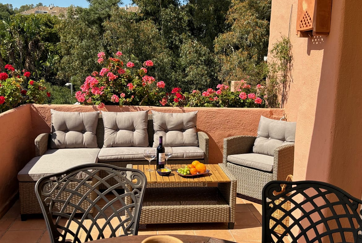 From the lounge there are large glass fronted sliding patio doors leading to a spacious terrace where you can enjoy more sea views, there is sufficient room for dining out, Barbequing and relaxing whilst soaking up the South Westerly Sunshine.