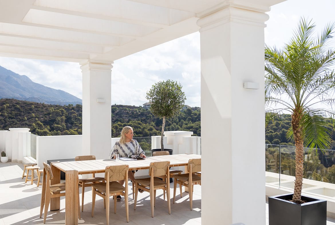 Located in the exclusive gated community of 9 Lions Residences above Puerto Banus, this corner duplex penthouse offers complete privacy, breathtaking sea views, and the feel of a private villa – without the maintenance.