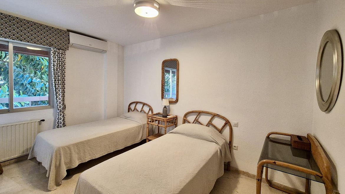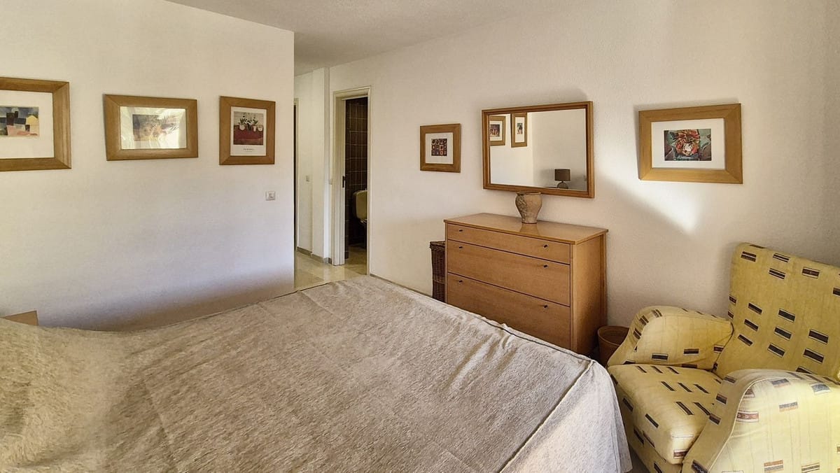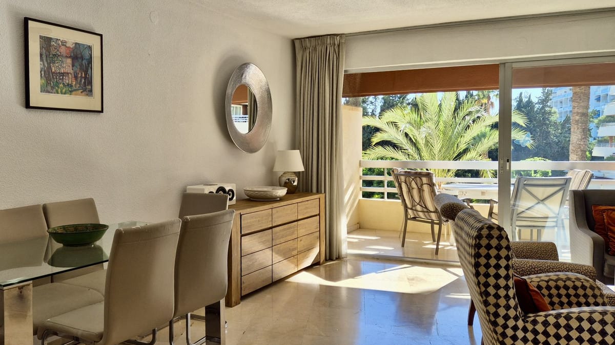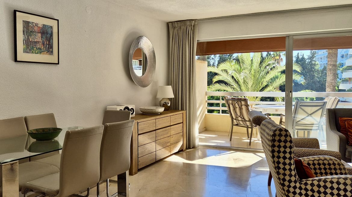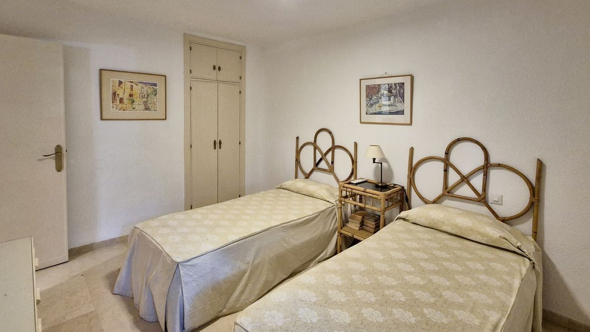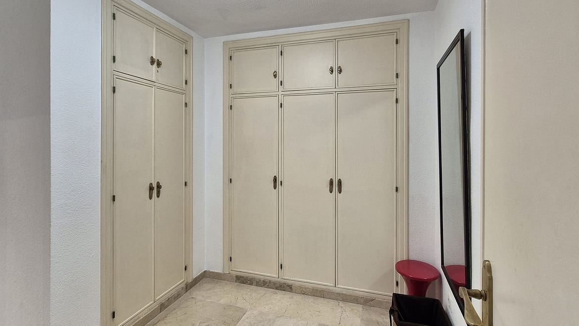 The bright living room offers an excellent space to enjoy both dining and relaxation by the TV. You can also step outside to a wonderful south-facing terrace that overlooks the pool, where you can enjoy al-fresco dining or evening drinks, whilst knowing that you have everything Marbella has to offer right at your doorstep. The kitchen is ample in size, and as a bonus, a gas stove connected via natural gas, which is perfect for those who enjoy cooking.