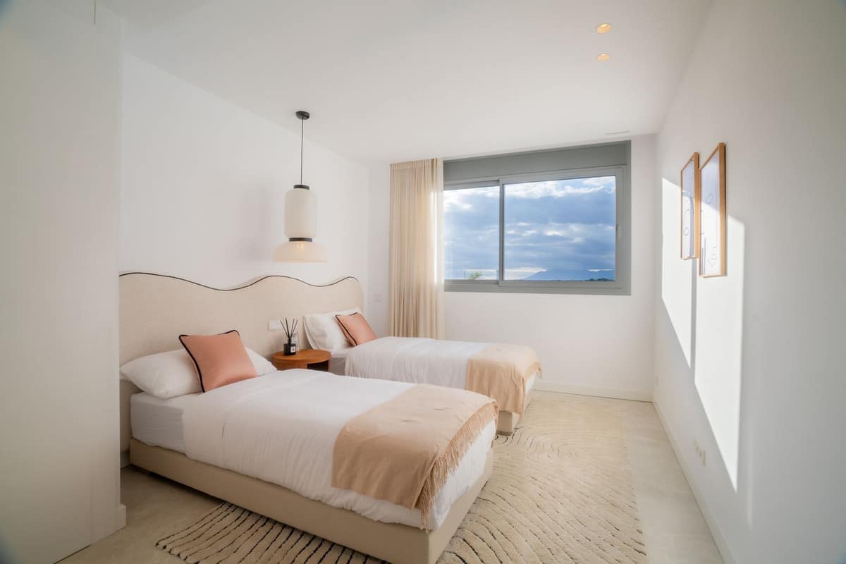 The large private terrace offers ample space for two distinct lounge or seating areas, ideal for enjoying Marbella’s climate, spectacular sunsets, and open views. The apartment is completely private, with the swimming pool conveniently located just below.