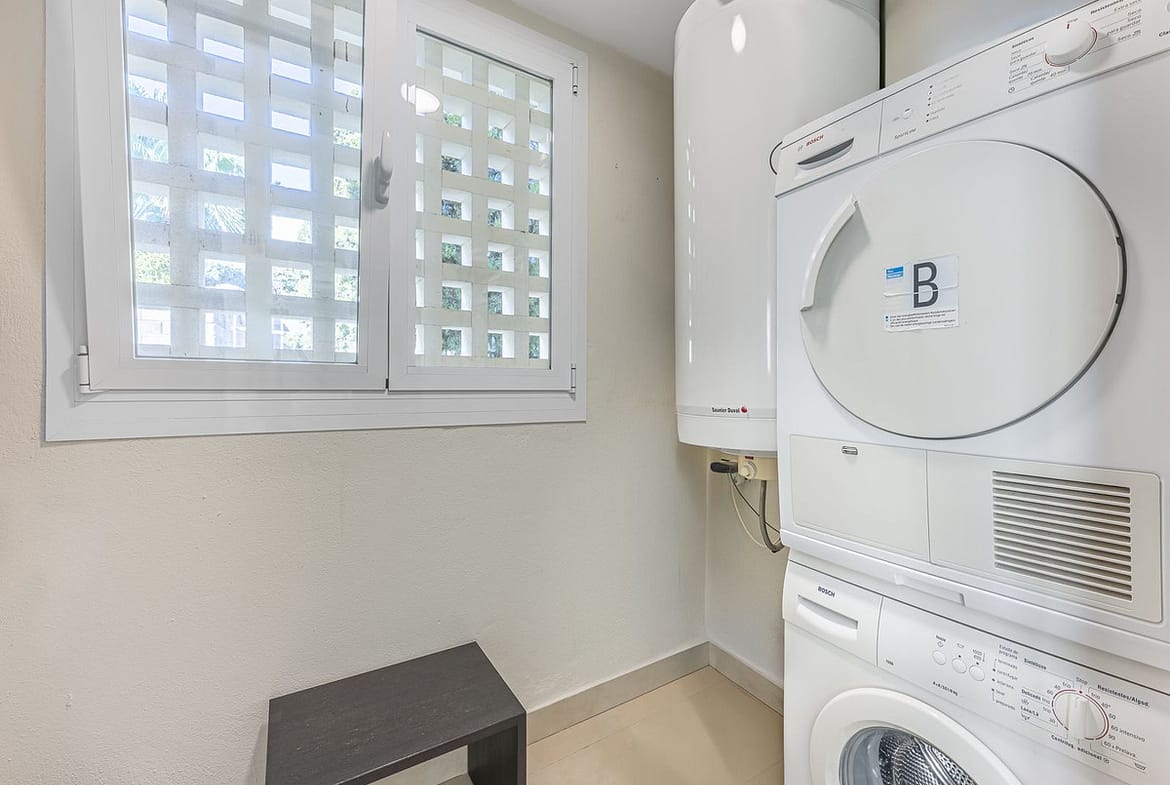 The apartment consists of three bedrooms, all with access to the terrace, a spacious living/dining room with stunning views, and a fully equipped kitchen with laundry room. Two bedrooms share a bathroom, and the master bedroom has an en-suite bathroom. The terrace is covered, allowing you to enjoy it and the exceptional views all year round.