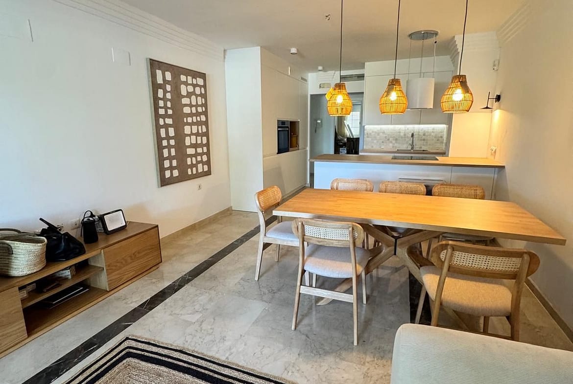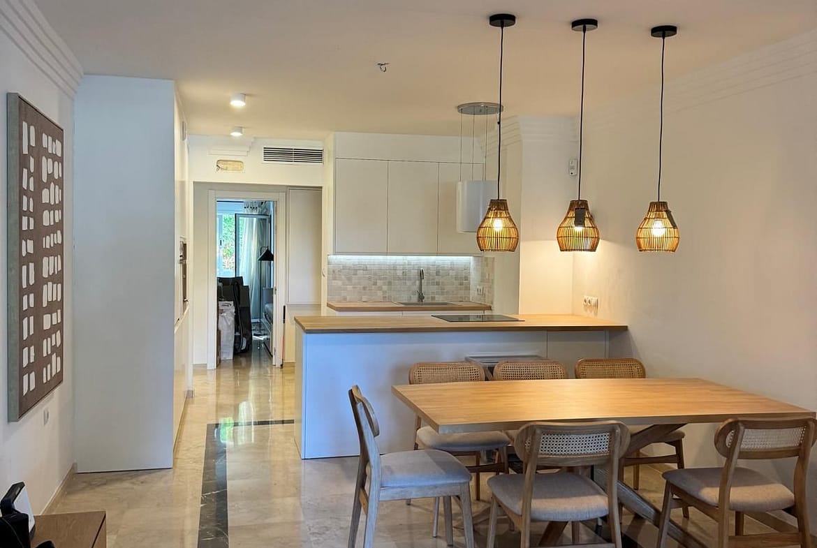 Enjoy underfloor heating in the bathrooms, efficient air conditioning, three spacious bedrooms, two pristine bathrooms, and a private terrace with direct access to inviting swimming pools. Additional perks include dedicated storage and a private parking space. Nestled in the serene, lush Urbanización Las Lomas del Río Real, this prime location provides easy access to the beach, premier golf courses, La Cañada shopping, Marbella’s vibrant center, and top schools, blending tranquility with connectivity.