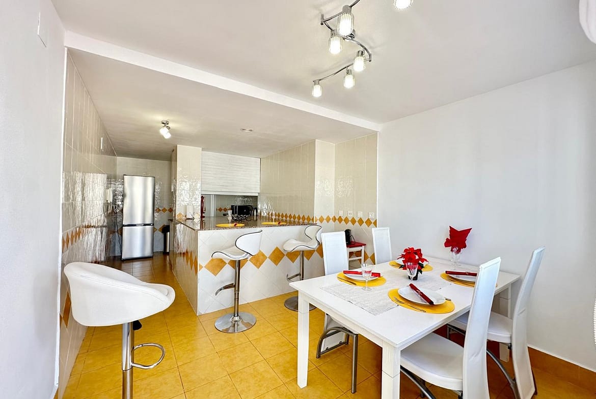 The penthouse, in excellent condition, features 137 m² of built area and an impressive 175 m² terrace, from which you can enjoy panoramic views of the sea, the city, and the mountains. The terrace, partially covered and with a solarium, provides space to enjoy the Mediterranean climate all year round, and includes balconies and an outdoor dining area. The interior is finished with top-quality materials, such as marble floors, and is delivered fully furnished for maximum comfort.