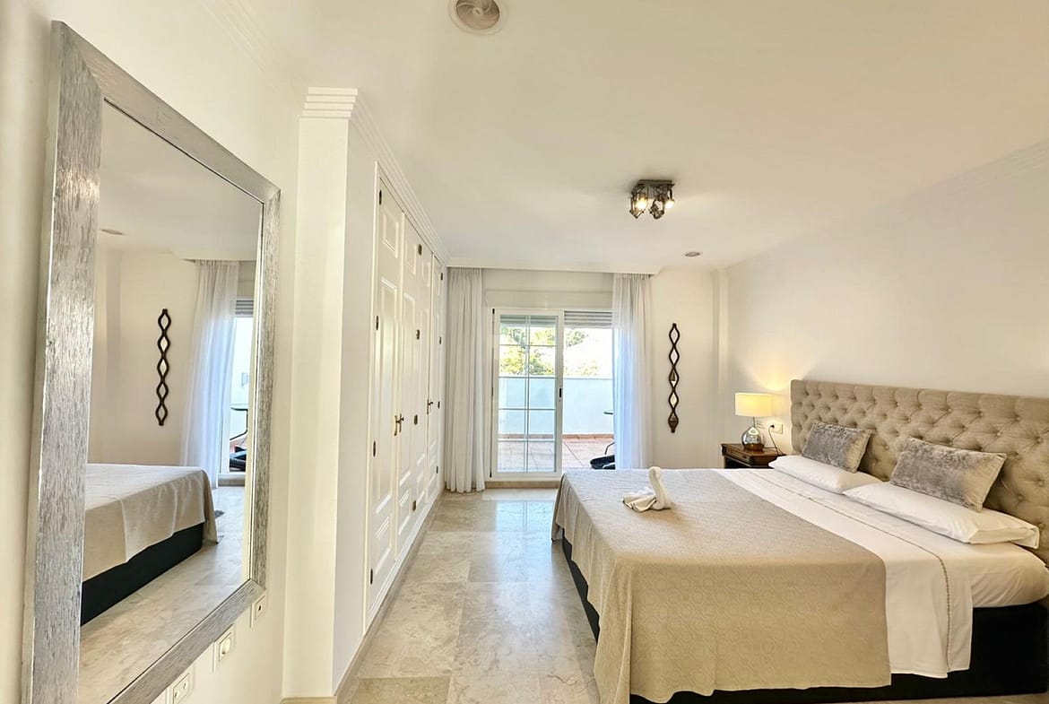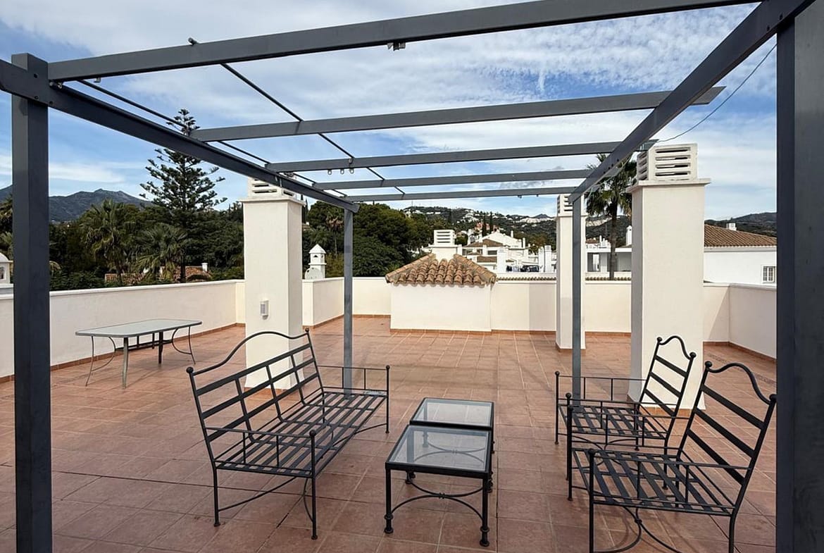 This fantastic duplex penthouse is located in the prestigious area of Las Lomas de Rio Real, in East Marbella, offering a privileged setting between the sea and the mountains. The property is situated in a gated community with security and enjoys proximity to all amenities, children’s areas, public transport, the beach, and Marbella’s city center.