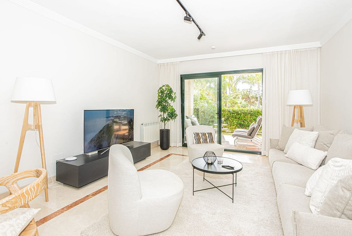 This beautifully renovated and spacious 3 bedroom, 2 bathroom apartment with garage parking is located in the sought after area of Nueva Andalucía. A perfect blend of luxury, comfort and a prime location, ideal for permanent living or a smart investment.