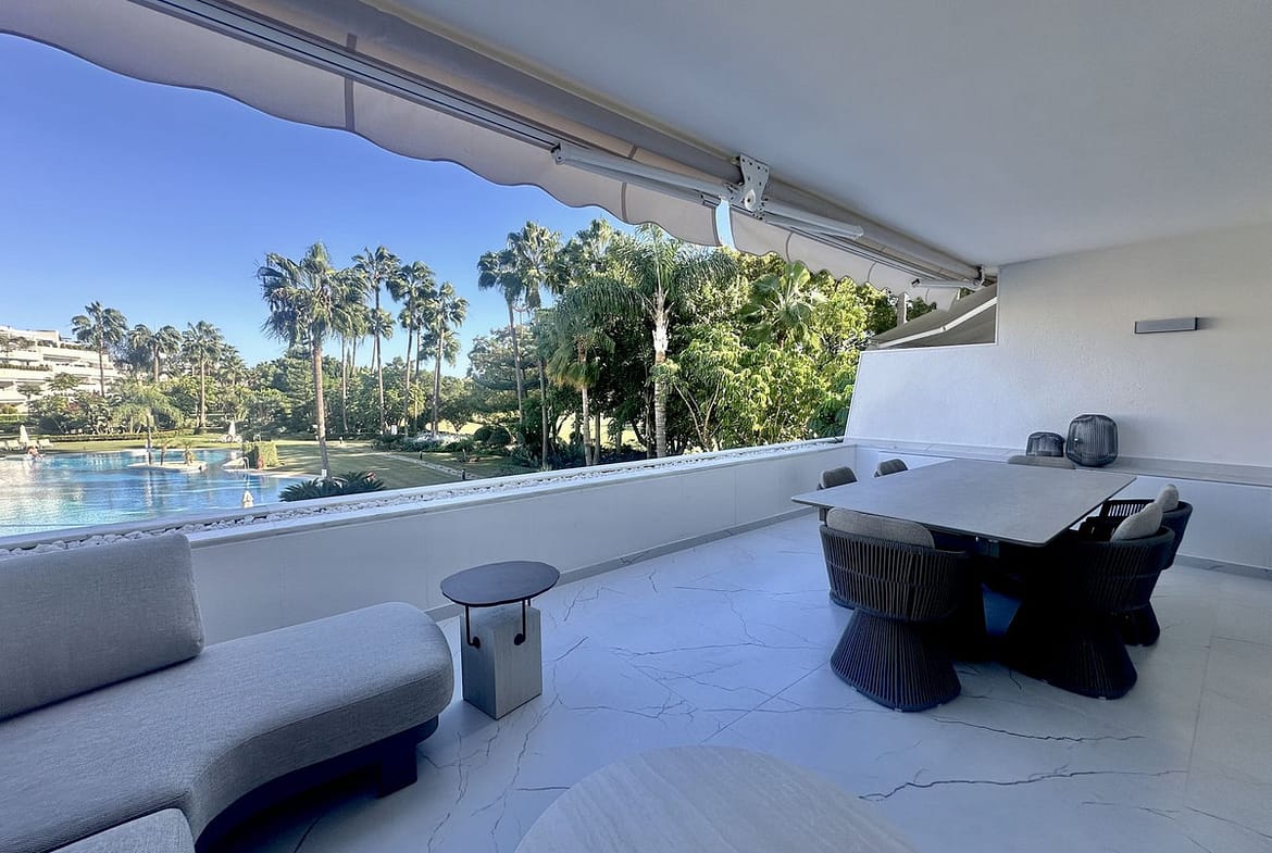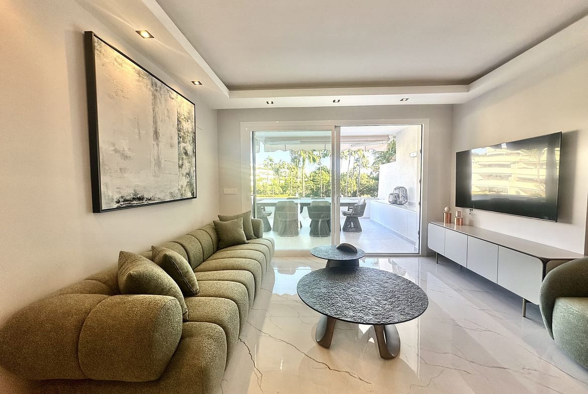 This exceptionally spacious and bright apartment has been recently renovated with top-quality materials and elegant designer furniture, offering a true turn-key home in one of Nueva Andalucía’s most prestigious communities.