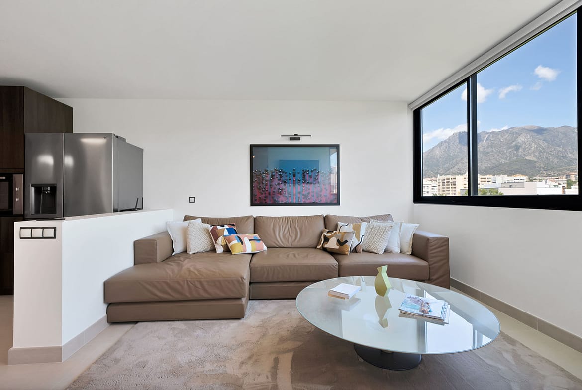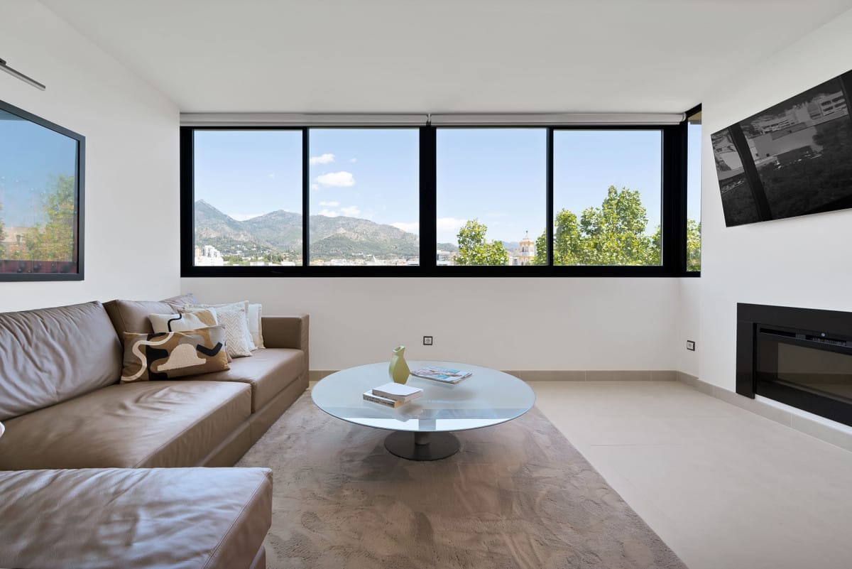 Living Room: From the living room, you can enjoy impressive views of the Mediterranean Sea, the Alameda Park, and the city of Marbella, providing a perfect setting for relaxation and appreciating the beauty of the surroundings.