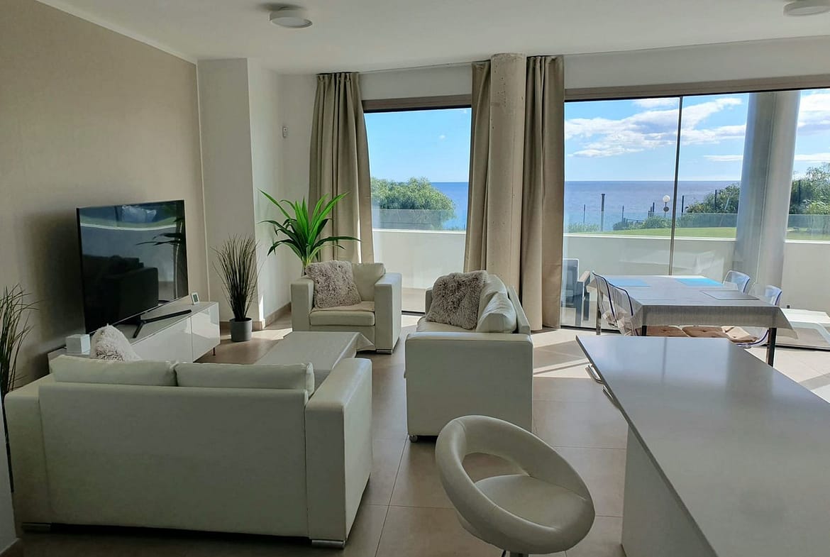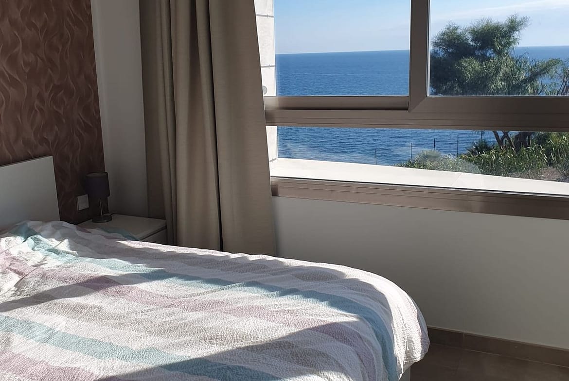 Breathtaking views of the Mediterranean Sea, visible from both the property and the communal areas.
